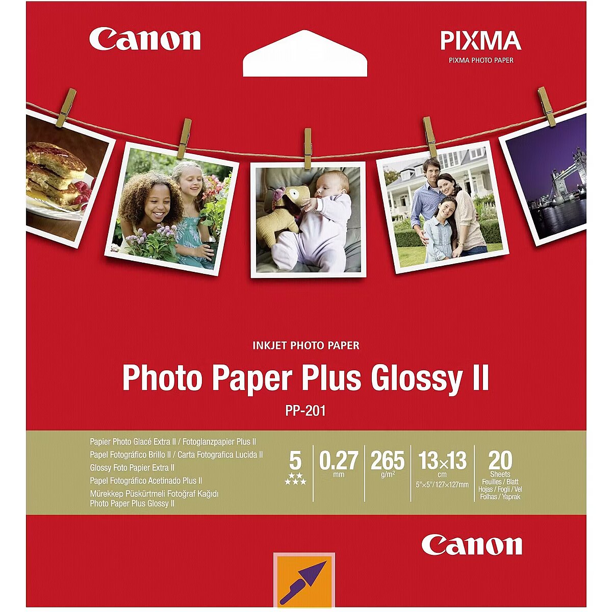 ShortSummaryDescription - Canon PP-201 Glossy II Photo Paper Plus 5x5" - 20 Sheets, Gloss, 265 g/m², Laser/Inkjet, White, 20 sheets, 130 mm
