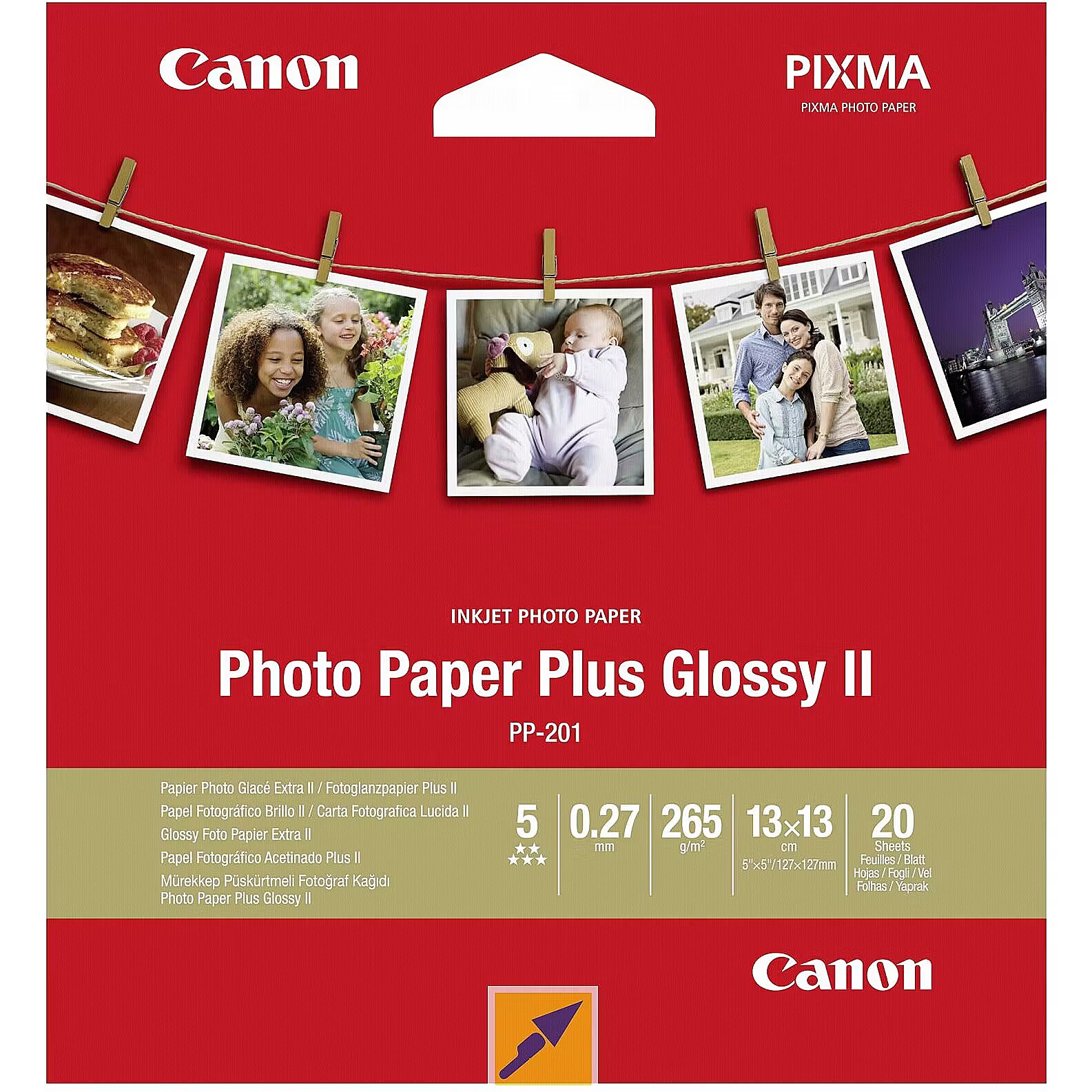 LongSummaryDescription - Canon PP-201 Glossy II Photo Paper Plus 5x5" - 20 Sheets. Finish type: Gloss, Media weight: 265 g/m², Print technology: Laser/Inkjet. Width: 130 mm, Height: 130 mm