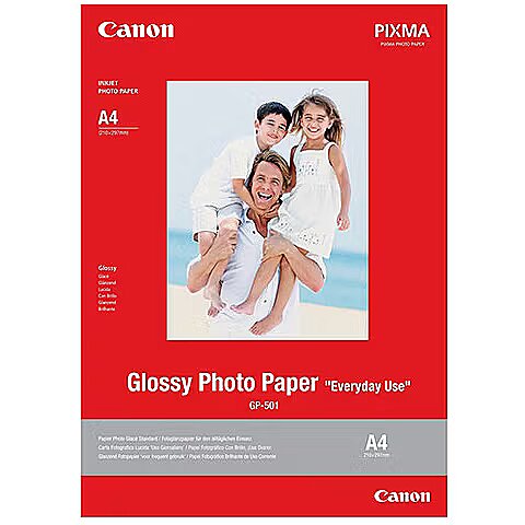 description_en - Canon Everyday Use Glossy GP-501 is the perfect photo paper for superior quality output with a glossy finish. It provides the perfect finish for digital photographs and all your reprints. Genuine Canon photo papers have a micro-porous coating that quickly absorbs ink deep below the surface to prevent any excess ink from being left on the paper’s surface. The result: instant-dry photo prints. Canon glossy papers lock the ink deeper below the top glossy surface than other papers do. This way a ‘glossy’ finish is always glossy. Sheet size: A4 / 210 × 297 mm Perfect photo paper for superior quality output with a glossy finish Grammage: 200 g/m² Thickness: 0.21 mm Glossy photo paper for printing everyday photographs Suitable for all inkjet printers Package: 20 sheets