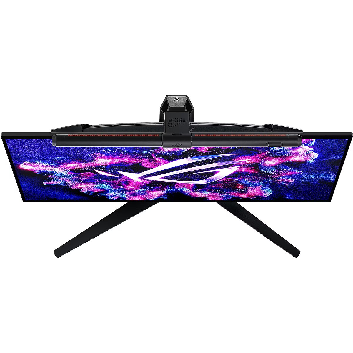 LongDesc - ROG Aura Monitor Light Bar ALB01ROG Aura Monitor Light Bar ALB01― Asymmetrical lighting bar offers three different modes and features a patented clamp and magnetic buckle design, Aura Sync compatibility, plus DisplayWidget Center softwareLIGHT UP YOUR GAMING WORLDThe ROG Aura Monitor Light Bar is designed to cast a soft glow on your desk to enhance the atmosphere of your gaming setup. Three lighting modes and multiple eye-care certifications ensure comfortable viewing ― so it’s ideal for marathon gaming sessions.THREE LIGHTING MODESThree lighting modes offer the flexibility to adapt to different preferences and setups. Use the Screen Light mode to illuminate your desk; use the Aura RGB light mode to synchronize lighting with other ROG Aura-compatible accessories and give your gaming setup a unified look; or activate both modes for comprehensive all-round lighting.ASYMMETRICAL LIGHT DESIGNThe unique asymmetrical light design of the ROG Aura Monitor Light Bar effectively illuminates your gaming setup while minimizing unwanted onscreen reflections. This transforms your gaming environment, creating an immersive ambience and allowing you to focus on the onscreen action.UNIFORM LIGHTINGThe ROG Aura Monitor Light Bar offers wide lighting coverage and provides up to a 60% improvement in uniform lighting compared to other light bars on the market.ADJUSTABLE COLOR TEMPERATUREUse the roller light switch on the ROG Aura Monitor Light Bar to seamlessly go from 2700K warm-light to up to 6500K cool-white lighting.UNIVERSAL COMPATIBILITYThe ROG Aura Monitor Light Bar boasts a patented clamp and magnetic-buckle design that works with standard or curved monitors of various sizes.PATENTED CLAMPThe clamp attaches easily to monitors of various thicknesses, and includes a convenient dial that allows for precise adjustments for a perfect fit.MAGNETIC BUCKLEThe rotating magnetic buckle adapts to flat or various curved monitors. DisplayWidget CenterAdjust settings directly on the light bar with physical buttons, or use the DisplayWidget Center software for convenient control.WORLD-CLASS EYE CARE STANDARDSThe ROG Aura Monitor Light Bar meets numerous certification requirements including the IEC 62471 and IEC 62778 dual certifications for blue light hazards, as well as the IEEE 1789 standard for flicker-free LED light sources to ensure comfortable and safe lighting.