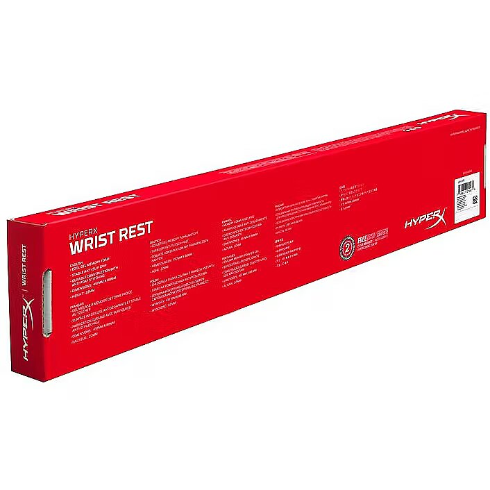 LongDesc - Cool comfort and cushioning for full-sized keyboards.The HyperX™ Wrist Rest provides comfortable wrist cushioning for gamers who use full-sized keyboards. It has an anti-slip natural rubber underside crafted to remain stable while your fingers fly across the keys. Built to last, the HyperX Wrist Rest features anti-fray stitching and is constructed with a focus on quality, so it’ll provide long-lasting comfort session after session.