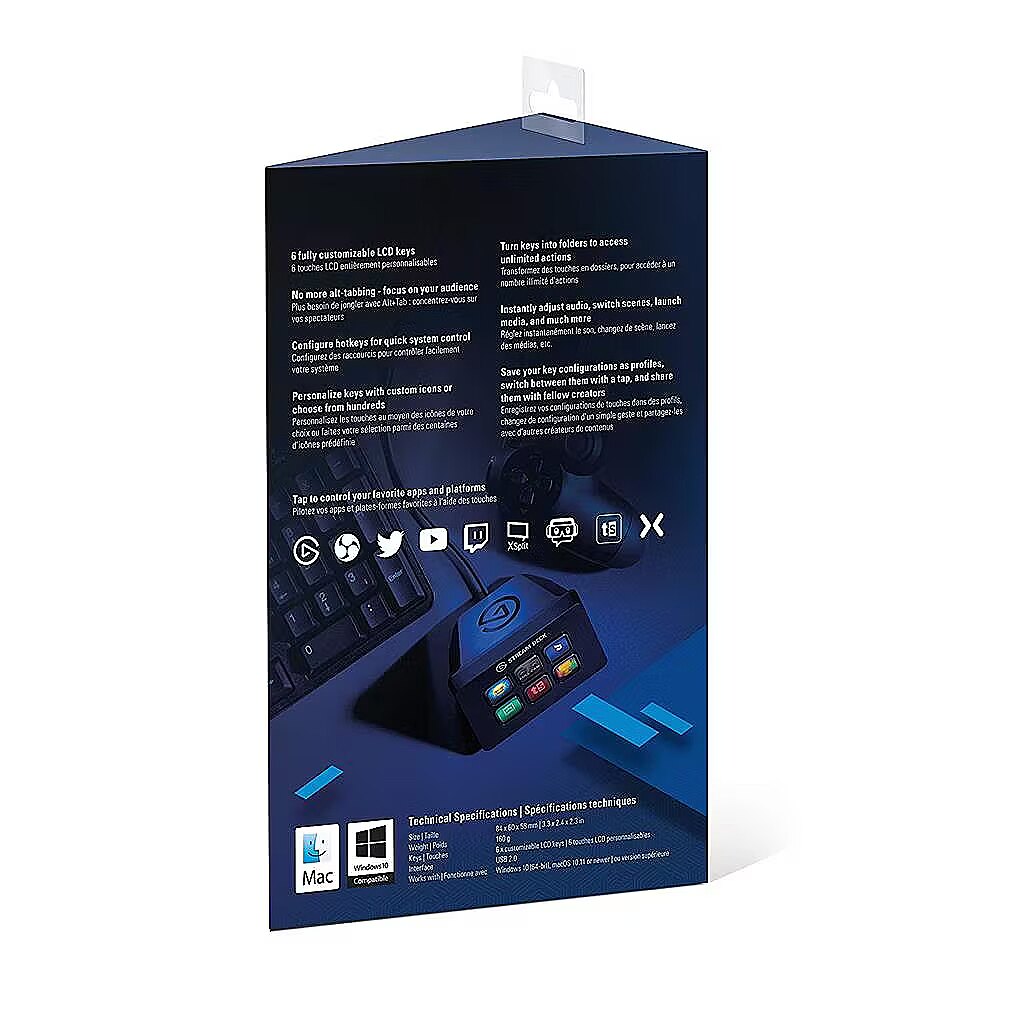 Description - Stream Deck Mini Mały, ale potężny Stream Deck Mini ma taką samą moc jak Stream Deck. Oznacza to, że masz taką samą kontrolę na poziomie studia, aby zoptymalizować swoje treści. Ta sama elastyczna funkcjonalność zwiększająca wartość produkcji. I te same oszczędzające czas integracje, aby zmaksymalizować zaangażowanie odbiorców. Wszystko w ultrakompaktowym opakowaniu, które jest łatwiejsze w kieszeni. Ustawia nowy wzorzec 6 w pełni konfigurowalnych klawiszy LCD gotowych do wyzwalania nieograniczonej liczby działań. Obsługa dotykowa jednym dotknięciem. Natychmiastowa wizualna informacja zwrotna. Zaawansowane, ale łatwe w użyciu oprogramowanie. Tradycyjnie ten poziom kontroli był dostępny wyłącznie dla głównych nadawców rozrywki. Teraz jest na wyciągnięcie ręki. Działa z tym, co kochasz OBS Studio, XSplit, Streamlabs, Twitch, YouTube, Twitter i nie tylko - Stream Deck Mini bezproblemowo integruje Twoje ulubione narzędzia i platformy. Od automatycznego wykrywania scen i źródeł po uruchamianie kanałów mediów społecznościowych - wszystko robisz za jednym dotknięciem. Działa z tym, co kochasz OBS Studio, XSplit, Streamlabs, Twitch, YouTube, Twitter i nie tylko - Stream Deck Mini bezproblemowo integruje Twoje ulubione narzędzia i platformy. Od automatycznego wykrywania scen i źródeł po uruchamianie kanałów mediów społecznościowych - wszystko robisz za jednym dotknięciem. Rośnie wraz z Twoimi potrzebami Zamień klucze w foldery, aby gromadzić i uzyskiwać dostęp do dowolnej liczby działań. Co więcej, zapisz unikalne konfiguracje kluczy jako inteligentne profile dla różnych gier i aplikacji. Zmieniaj się między nimi w locie. I podziel się nimi z innymi twórcami. Wielozadaniowość jak szef Jeśli uważasz, że naciśnięcie klawisza w celu wykonania czynności jest imponujące, pokochasz Multi Actions. Zgadza się - przypisz dowolną liczbę czynności do jednego klawisza i uruchom je wszystkie jednym dotknięciem. Pojedynczo oddzielone odstępami. Albo razem, jednocześnie. Utrzymuje Cię na najwyższym poziomie Dawno minęły czasy, kiedy trzeba było nawigować w niezliczonych oknach w celu wywołania akcji i polegać wyłącznie na zautomatyzowanych wtyczkach w celu zwiększenia wartości produkcji. Teraz masz moc, aby być pionierem w nowej erze tworzenia treści. Teraz masz wszystko pod kontrolą.