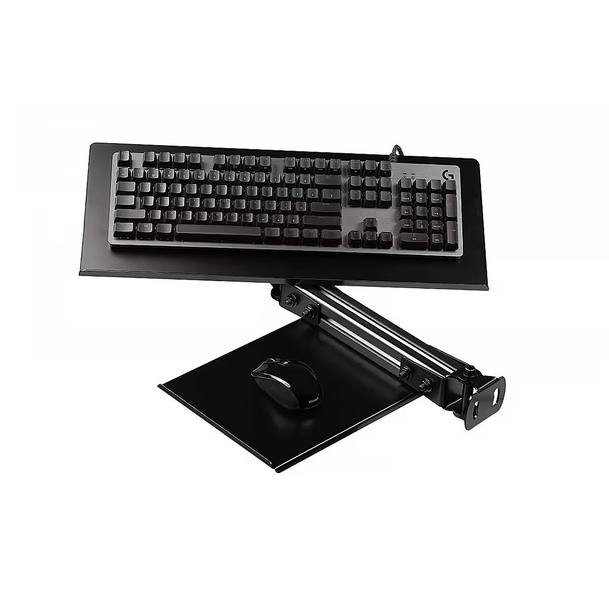 Półka na klawiaturę i mysz Next Level Racing F-GT Elite oferuje pełne spektrum możliwości regulacji, z 60 stopniami pochylenia ramienia montażowego (30 stopni z przodu i 30 stopni z tyłu) oraz 150 stopni dla płyty klawiatury.