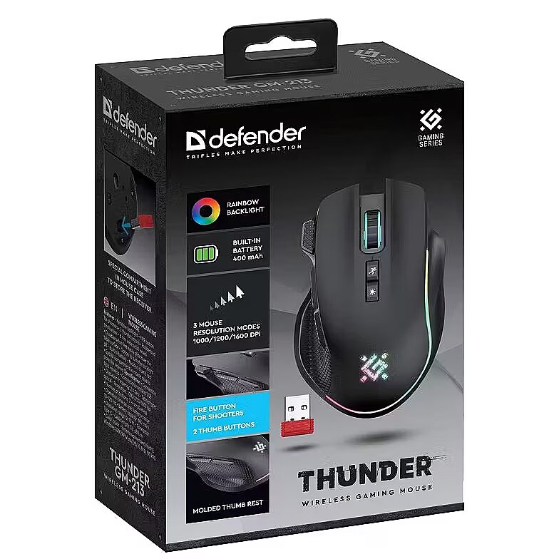 productName - MOUSE DEFENDER GM-213 THUNDER RF 1600dpi 8P BLACK