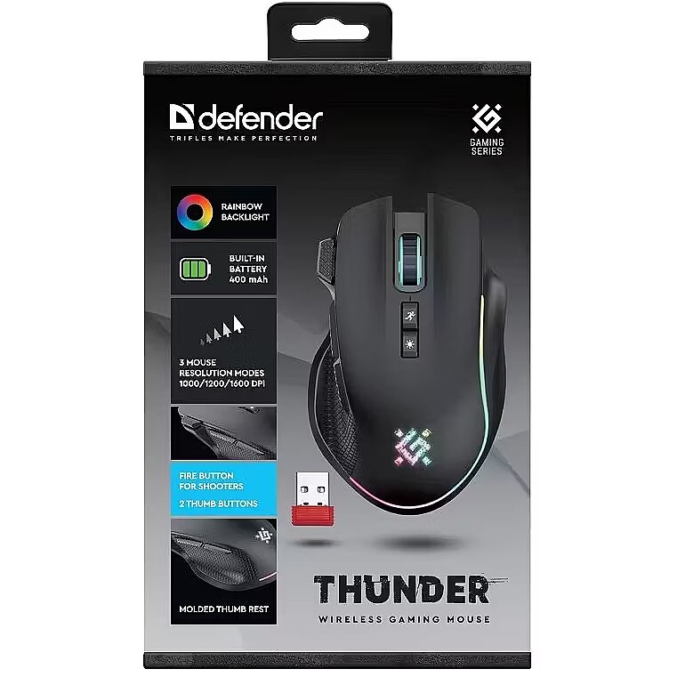 Defender MOUSE DEFENDER GM-213 THUNDER RF 1600dpi 8P BLACK
