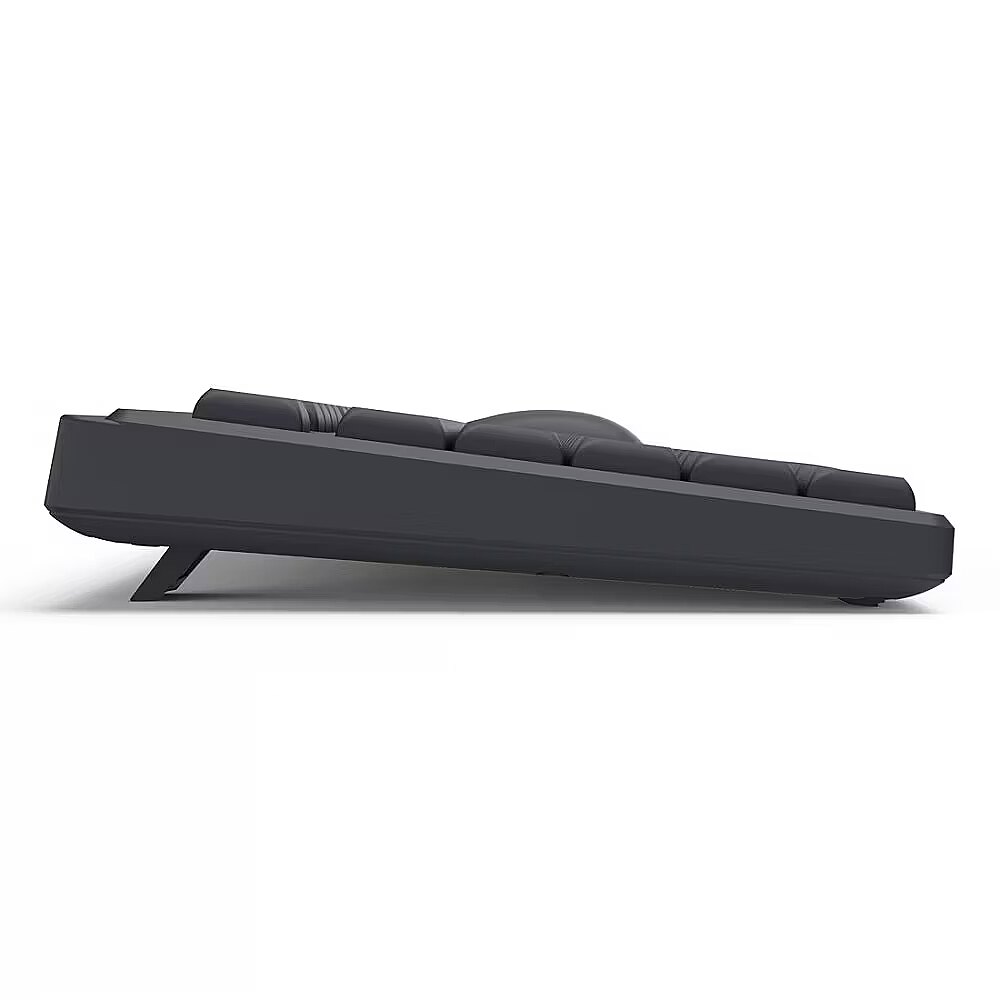 Bezprzewodowa klawiatura jest wyposażona w ciche klawisze, które pozwalają na spokojną pracę bez hałasu i zakłócania spokoju innych, idealne rozwiązanie do biura. Natomiast składane nóżki pozwalają na dostosowanie kąta nachylenia klawiatury, co zapewnia wygodną pozycję dłoni podczas pisania.