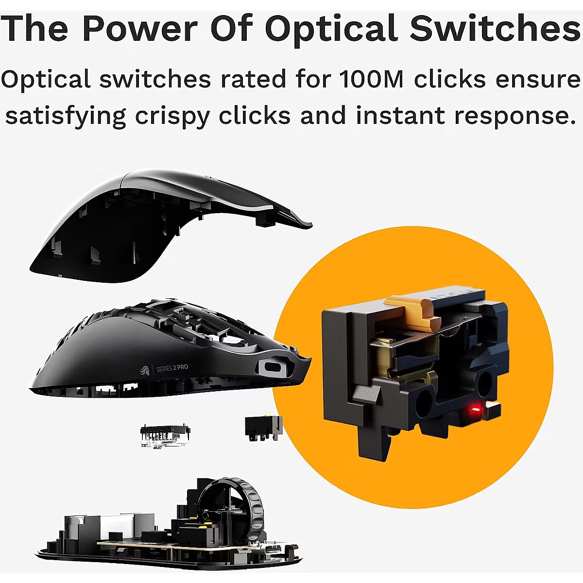 LongDesc - Back by popular demand, the Series 2 PRO returns to bring top-tier performance for competitive gamers. Featuring the same fan-favorite shape of the Series One PRO, the next generation boasts new features like 8K wireless polling and optical switches, rated for 100 million-click-lifespan.