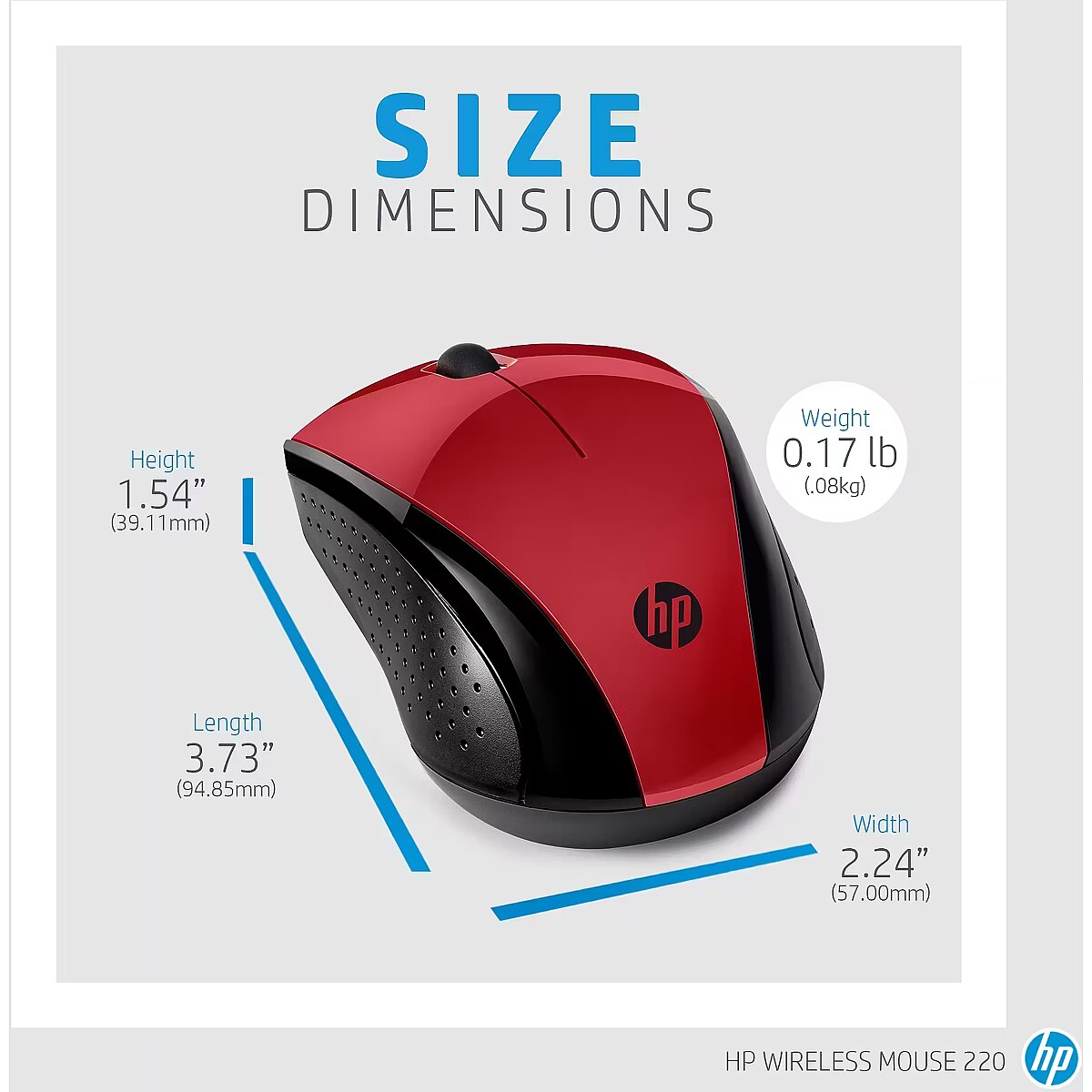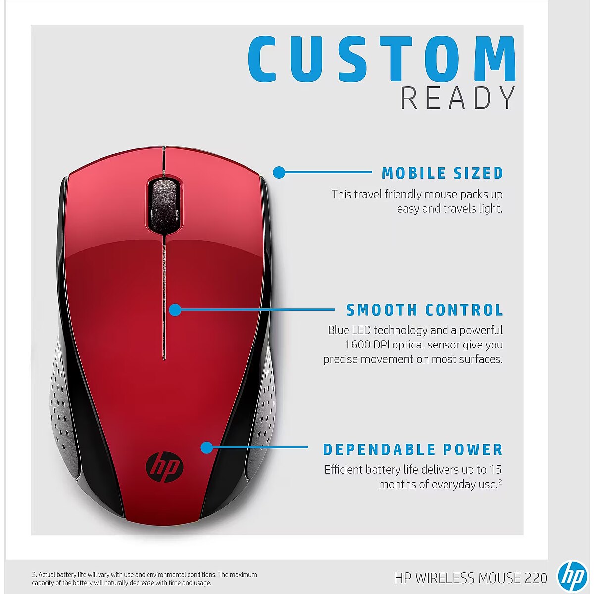 An ambidextrous travel-sized wireless mouse with long battery life Improve the way you connect and communicate, work and play. Built with strict HP standards and guidelines, this world-class HP Wireless Mouse 220 effortlessly blends sleek, modern design with life-enhancing, advanced features.