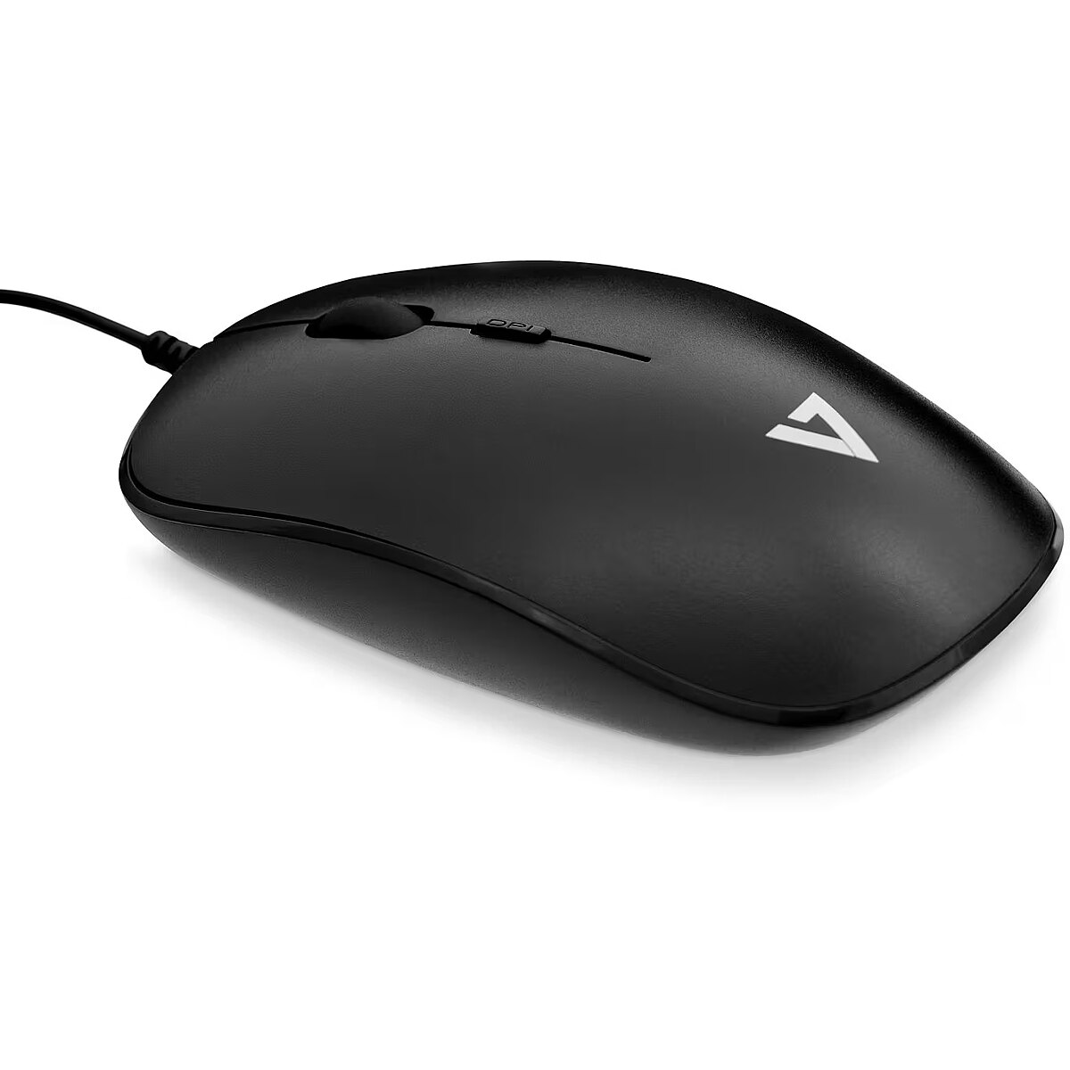 LongSummaryDescription - V7 Low Profile USB Optical Mouse - Black. Form factor: Ambidextrous. Movement detection technology: Optical, Device interface: USB Type-A, Movement resolution: 1600 DPI, Buttons type: Pressed buttons, Buttons quantity: 4, Scroll type: Wheel. Power source: Cable. Product colour: Black