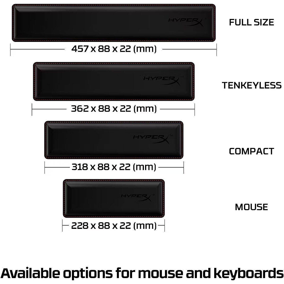 LongDesc - Cool comfort and cushioningThe HyperX Wrist Rest provides comfortable wrist cushioning for use with a mouse or a variety of keyboard sizes. It has an anti-slip natural rubber underside crafted to remain stable while your fingers fly across the keys. Built to last, the HyperX Wrist Rest features anti-fray stitching, and is constructed with a focus on quality, so it’ll provide long-lasting comfort session after session.
