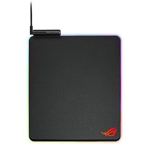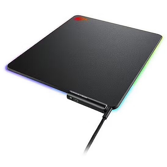LongDesc - ROG Balteus RGB hard gaming mouse pad with optimized tracking surface, 15-zone individually customizable Aura Sync lighting, USB passthrough, and non-slip rubber base