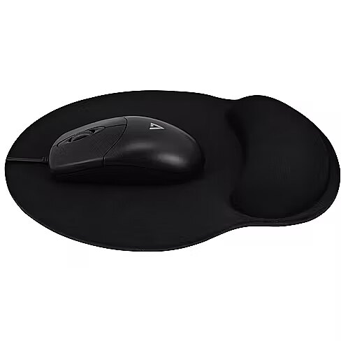 LongSummaryDescription - V7 MP03BLK. Width: 220 mm, Depth: 250 mm. Product colour: Black, Surface coloration: Monochromatic, Material: Memory foam, Rubber, Wrist rest, Non-slip base