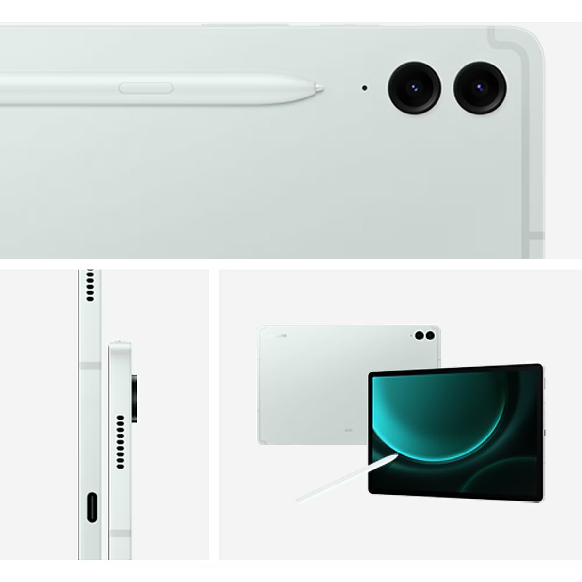 LongDesc - Circle it, find it. Just like thatExperience Circle to Search with Google and search like never before, Simply circle around an object to get Google Search results. Its a new visual way to find what youre looking for.Search like never before with Circle to Search with Google.Colourful design that lets you shineStep into a world of fun creative possibilities and entertainment with Galaxy Tab S9 FE and Tab S9 FE+. View, create and share what you love in vivid detail on the bright, immersive screen. Both models come in Grey, Mint, Silver or Lavender to effortlessly match your unique vibe.Power up your notetaking with S PenWrite, sketch, and draw on your favourite notetaking app with the redesigned water and dust-resistant inbox S Pen. Now in four trendy colours, it attaches magnetically to the back of your device and matches its style. Galaxy Tab S9 FE and Tab S9 FE+ even support S Pen Creator Edition to unleash your full creative potential.Vibrant hues. Stunning views.Everything on screen is lifelike with the high-resolution 12.4-inch or 10.9-inch display. Details are crisp and clear with a wide range of vivid colours thanks to the DCI-P3 colour gamut and enhanced brightness, so you can always enjoy a spectacular viewing experience.All your media, super-smoothImmerse your senses in the smooth picture thanks to the screen's adaptive refresh rate of up to 90Hz. Whether you're binge-watching your favourite series, scrolling through social feeds or editing your latest video, the screen adjusts to make every motion look fluid and true to life.Expansive, bright views even outdoors with Vision BoosterVision Booster lets you see your Tab's spacious screen clearly in brightly lit areas thanks to an intelligent outdoor algorithm that detects the sun's glow and shifts to match. Go between the studio and patio with ease thanks to contrast and colour enhancements to keep things vibrant.Eye care for you and your loved onesView content, create and play as long as you like, knowing your eyes are well protected. The display on Galaxy Tab S9 FE and Tab S9 FE+ is engineered with reduced blue light emission to safeguard your eyesight, providing a comfortable viewing experience while you stay in your fun zone.Stay creative on the move with a long-lasting batteryKeep the creative juices flowing with the long-lasting battery. It's got the power to get you through most of your day and perhaps even spare some in case your phone needs a boost, too. Plug in your Samsung Galaxy smartphone with a USB-C cable and Fast Charging takes care of the rest.Elevate your creativity, optimised for the big screenLet your imagination run wild on pro-level notetaking with Samsung Notes and Goodnotes — optimised to provide a seamless S Pen experience and the feel of writing on actual paper. Sketch in portrait view and edit in horizontal view, or vice versa.The first water and dust-resistant Galaxy S FE tabletWhen the day gets tough, Tab and S Pen stay sturdy and durable. The smooth tablet design is suited up with a strong full-metal frame and the IP68 rating means it's our first water and dust-resistant Galaxy S FE tablet with S Pen ever.Speed up your productivity, bump up your storageEquipped with our high-performing Exynos 1380 chipset, Galaxy Tab S9 FE and Tab S9 FE+ keep multitasking, streaming and gaming smooth and fast. Choose up to 256GB internal storage, then grab your microSD to add on more storage in case you need even more room for your videos, compositions, hi-res photos and more.Get a PC-like experience with a single snapAttach the Book Cover Keyboard to topple your to-do lists with ease. Featuring function keys and a trackpad, it supports DeX mode for a seamless PC-like experience. Assign app shortcuts to up your efficiency and connect wirelessly to other Samsung Galaxy devices to type on any screen.