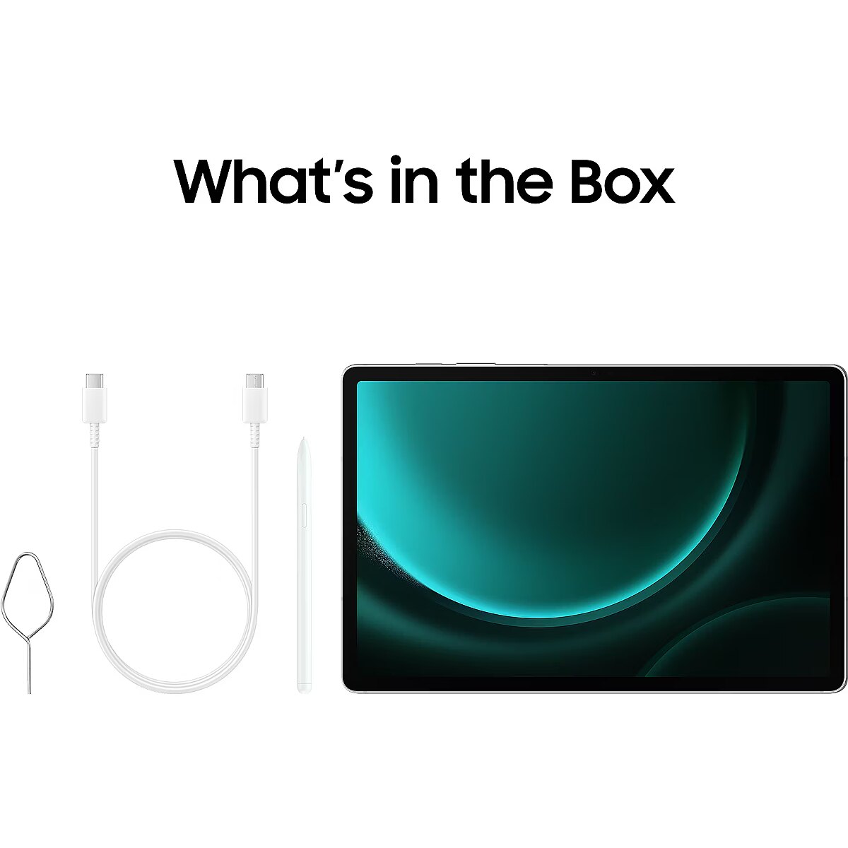 LongDesc - Circle it, find it. Just like thatExperience Circle to Search with Google and search like never before. Simply circle around an object to get Google Search results. Its a new visual way to find what you're looking for.Search like never before with Circle to Search with Google.Colourful design that lets you shineStep into a world of fun creative possibilities and entertainment with Galaxy Tab S9 FE and Tab S9 FE+. View, create and share what you love in vivid detail on the bright, immersive screen. Both models come in Grey, Mint, Silver or Lavender to effortlessly match your unique vibe.Power up your notetaking with S PenWrite, sketch, and draw on your favourite notetaking app with the redesigned water and dust-resistant inbox S Pen. Now in four trendy colours, it attaches magnetically to the back of your device and matches its style. Galaxy Tab S9 FE and Tab S9 FE+ even support S Pen Creator Edition to unleash your full creative potential.Vibrant hues. Stunning views.Everything on screen is lifelike with the high-resolution 12.4-inch or 10.9-inch display. Details are crisp and clear with a wide range of vivid colours thanks to the DCI-P3 colour gamut and enhanced brightness, so you can always enjoy a spectacular viewing experience.All your media, super-smoothImmerse your senses in the smooth picture thanks to the screen's adaptive refresh rate of up to 90Hz. Whether you're binge-watching your favourite series, scrolling through social feeds or editing your latest video, the screen adjusts to make every motion look fluid and true to life.Expansive, bright views even outdoors with Vision BoosterVision Booster lets you see your Tab's spacious screen clearly in brightly lit areas thanks to an intelligent outdoor algorithm that detects the sun's glow and shifts to match. Go between the studio and patio with ease thanks to contrast and colour enhancements to keep things vibrant.Eye care for you and your loved onesView content, create and play as long as you like, knowing your eyes are well protected. The display on Galaxy Tab S9 FE and Tab S9 FE+ is engineered with reduced blue light emission to safeguard your eyesight, providing a comfortable viewing experience while you stay in your fun zone.Stay creative on the move with a long-lasting batteryKeep the creative juices flowing with the long-lasting battery. It's got the power to get you through most of your day and perhaps even spare some in case your phone needs a boost, too. Plug in your Samsung Galaxy smartphone with a USB-C cable and Fast Charging takes care of the rest.Elevate your creativity, optimised for the big screenLet your imagination run wild on pro-level notetaking with Samsung Notes and Goodnotes — optimised to provide a seamless S Pen experience and the feel of writing on actual paper. Sketch in portrait view and edit in horizontal view, or vice versa.The first water and dust-resistant Galaxy S FE tabletWhen the day gets tough, Tab and S Pen stay sturdy and durable. The smooth tablet design is suited up with a strong full-metal frame and the IP68 rating means it's our first water and dust-resistant Galaxy S FE tablet with S Pen ever.Speed up your productivity, bump up your storageEquipped with our high-performing Exynos 1380 chipset, Galaxy Tab S9 FE and Tab S9 FE+ keep multitasking, streaming and gaming smooth and fast. Choose up to 256GB internal storage, then grab your microSD to add on more storage in case you need even more room for your videos, compositions, hi-res photos and more.Get a PC-like experience with a single snapAttach the Book Cover Keyboard to topple your to-do lists with ease. Featuring function keys and a trackpad, it supports DeX mode for a seamless PC-like experience. Assign app shortcuts to up your efficiency and connect wirelessly to other Samsung Galaxy devices to type on any screen.