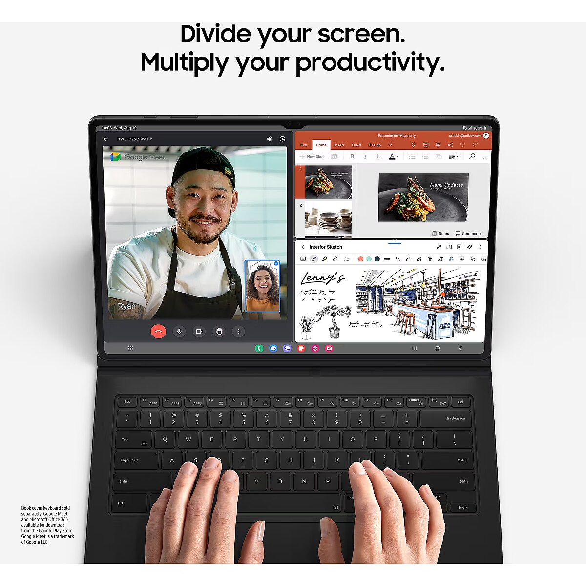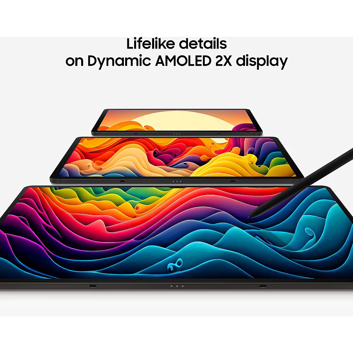 LongDesc - Three sizes. Two nature-inspired colorsChoose between understated, professional Graphite and soft, natural Beige — both accentuated with premium detailing and a smooth blasting finish for a sophisticated look.Get a crystal-clear, comfortable view with Dynamic AMOLED 2XWhether you choose Galaxy Tab S9, Galaxy Tab S9+ or Galaxy Tab S9 Ultra, each is ready to bring your creative vision to life. All three feature a Dynamic AMOLED 2X display, delivering stunning color and visuals. Plus, it's easy on the eyes with reduced blue light emission.Unified design. The beauty is in the detailsIt's always the smallest things that matter most. Like the floating camera design on the back — crafted to elegantly encapsulate the upgraded camera system. We even reimagined the side buttons and speaker arrangement to feel more familiar.Vibrant hues. Stunning viewsEverything on screen is lifelike with the high-resolution Dynamic AMOLED 2X display. Details are crisp and clear with a wide range of vivid colors and true blacks thanks to HDR10+ enhanced visuals and smooth scrolling at up to 120Hz refresh rate.Level up your play with epic, cinematic visualsThe Galaxy Tab S9 Series delivers an engrossing, photo-realistic gaming experience on the Tab's expansive screen for marathon playthroughs.The experience is heightened with immersive audio from the quad AKG speaker system and Dolby Atmos surround sound.The first water and dust-resistant Galaxy S tabletWhen the day gets tough, the Galaxy Tab S9 Series stays sturdy and durable. The smooth metal design is suited up with our strongest Armor Aluminum frame — living up to its name by protecting your tablet from shocks and drops. And the IP68 rating means it's our first water and dust-resistant Galaxy Tab S Series ever.S Pen. Stronger, faster, more responsiveWe rebuilt the included S Pen to be IP68 water resistant just like the tablet. It's also improved across the board, with enhanced tip sensitivity for less accidental clicks. And with the magnetic attachment and bidirectional charging, just snap it on to charge.Enhanced outdoor viewing with Vision BoosterVision Booster lets you see your screen clearly in brightly lit areas thanks to an intelligent outdoor algorithm that detects the sun's glow and shifts to match. Go between the studio and patio with ease thanks to contrast and color enhancements to keep things vibrant.Next-gen processor for next-level, lifelike gamingThe extremely fast Snapdragon® 8 Gen 2 for Galaxy processor is intelligently engineered to deliver revved-up performance and power savings for champion-level gameplay. The graphics engine powers true-to-life reflections and shadows in 3D gaming environments for immersive gaming.Stay creative on the move with a long-lasting batteryKeep the creative juices flowing with the long-lasting battery. It's got enough power to get you through your day and even spare some in case your phone needs a boost, too. Plug in your Samsung Galaxy smartphone with a USB-C cable and Fast Charging takes care of the rest.Store all your inspiration with microSD supportChoose up to 1TB internal storage, sketch your masterpiece with GoodNotes, then grab your microSD to add on more storage in case you need even more room for your videos, compositions, hi-res photos and more.Elevate your notetaking, optimized for the big screenLet your imagination run wild on pro-level notetaking with GoodNotes — optimized to provide a seamless S Pen experience and feel of writing on actual paper. Sketch in portrait view and edit in horizontal view, or vice versa.Put S Pen to paper with the NotePaper ScreenWith the NotePaper Screen, writing is the next best thing to pen and paper. Add in S Pen — the ultimate drawing tool to elevate your canvas. It is sensitive to pressure and tilt, allowing you to create detailed sketches and illustrations with precision and control.Note taking just got more noteworthyAmp up your productivity with S Pen's enhanced note-taking functions. Quickly jot down novel ideas or make a quick diagram to get your point across. And with S Pen to Text, you can seamlessly turn your handwriting into text input in a wide range of apps like Google, Messages, Maps and more.Live collaboration comes to Samsung NotesPull your teammates in for a brainstorming session, facilitated by S Pen and Samsung Notes. Share notes between Samsung Galaxy devices to edit content in real time directly in the app. You can even scan multi-page documents easily and save them in Gallery to pull them up during video calls.Get a PC-like experience with a single snapAttach the Book Cover Keyboard to topple your to-do lists with ease. Fully backlit with function keys and a trackpad, it supports DeX mode for a seamless PC-like experience. Assign app shortcuts to up your efficiency and connect wirelessly to other Samsung Galaxy devices to type smoothly on any screen.Shoot on your phone, share it to your tabletMove massive files from one Samsung Galaxy device to another in a flash with Quick Share. Open up LumaFusion to take advantage of the expansive screen to edit, cut and add final touches with precision.Streamline creativity and multitaskingPainting on your tablet just got easier with the newly-added Simple Mode on Clip Studio Paint. Elevate multitasking with your smartphone by using Multi Control that allows you to drag and drop images between the devices, or instantly transfer files from your smartphone and continue editing on your tablet.Divide your screen. Multiply your productivityConquer multiple tasks at once. You can sketch out architectural plans and choose captivating visuals and video chat — all on one screen without ever closing a window.