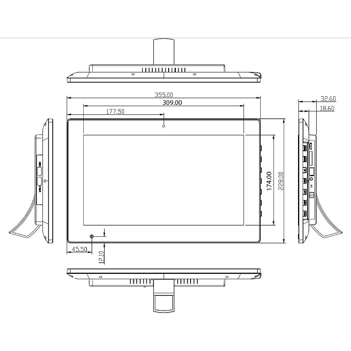The screen is the most important component of the tablet computer and its size determines the size of the tablet computer. Usually it is the diameter of the screen plus a couple of centimeters of the "holding part".