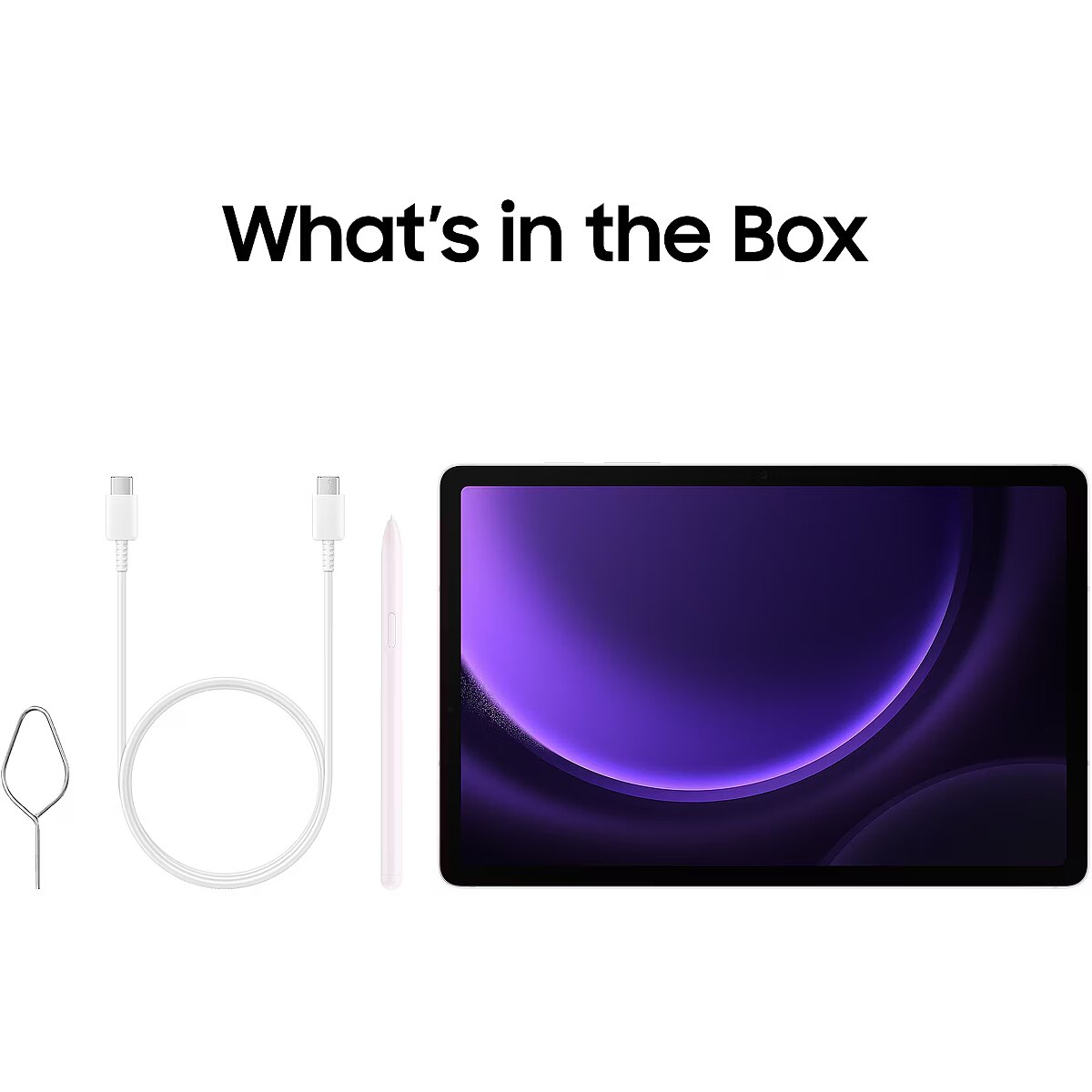 LongDesc - Circle it, find it. Just like thatExperience Circle to Search with Google and search like never before. Simply circle around an object to get Google Search results. Its a new visual way to find what you're looking for.Search like never before with Circle to Search with Google.Colourful design that lets you shineStep into a world of fun creative possibilities and entertainment with Galaxy Tab S9 FE and Tab S9 FE+. View, create and share what you love in vivid detail on the bright, immersive screen. Both models come in Grey, Mint, Silver or Lavender to effortlessly match your unique vibe.Power up your notetaking with S PenWrite, sketch, and draw on your favourite notetaking app with the redesigned water and dust-resistant inbox S Pen. Now in four trendy colours, it attaches magnetically to the back of your device and matches its style. Galaxy Tab S9 FE and Tab S9 FE+ even support S Pen Creator Edition to unleash your full creative potential.Vibrant hues. Stunning views.Everything on screen is lifelike with the high-resolution 12.4-inch or 10.9-inch display. Details are crisp and clear with a wide range of vivid colours thanks to the DCI-P3 colour gamut and enhanced brightness, so you can always enjoy a spectacular viewing experience.All your media, super-smoothImmerse your senses in the smooth picture thanks to the screen's adaptive refresh rate of up to 90Hz. Whether you're binge-watching your favourite series, scrolling through social feeds or editing your latest video, the screen adjusts to make every motion look fluid and true to life.Expansive, bright views even outdoors with Vision BoosterVision Booster lets you see your Tab's spacious screen clearly in brightly lit areas thanks to an intelligent outdoor algorithm that detects the sun's glow and shifts to match. Go between the studio and patio with ease thanks to contrast and colour enhancements to keep things vibrant.Eye care for you and your loved onesView content, create and play as long as you like, knowing your eyes are well protected. The display on Galaxy Tab S9 FE and Tab S9 FE+ is engineered with reduced blue light emission to safeguard your eyesight, providing a comfortable viewing experience while you stay in your fun zone.Stay creative on the move with a long-lasting batteryKeep the creative juices flowing with the long-lasting battery. It's got the power to get you through most of your day and perhaps even spare some in case your phone needs a boost, too. Plug in your Samsung Galaxy smartphone with a USB-C cable and Fast Charging takes care of the rest.Elevate your creativity, optimised for the big screenLet your imagination run wild on pro-level notetaking with Samsung Notes and Goodnotes — optimised to provide a seamless S Pen experience and the feel of writing on actual paper. Sketch in portrait view and edit in horizontal view, or vice versa.The first water and dust-resistant Galaxy S FE tabletWhen the day gets tough, Tab and S Pen stay sturdy and durable. The smooth tablet design is suited up with a strong full-metal frame and the IP68 rating means it's our first water and dust-resistant Galaxy S FE tablet with S Pen ever.Speed up your productivity, bump up your storageEquipped with our high-performing Exynos 1380 chipset, Galaxy Tab S9 FE and Tab S9 FE+ keep multitasking, streaming and gaming smooth and fast. Choose up to 256GB internal storage, then grab your microSD to add on more storage in case you need even more room for your videos, compositions, hi-res photos and more.Get a PC-like experience with a single snapAttach the Book Cover Keyboard to topple your to-do lists with ease. Featuring function keys and a trackpad, it supports DeX mode for a seamless PC-like experience. Assign app shortcuts to up your efficiency and connect wirelessly to other Samsung Galaxy devices to type on any screen.
