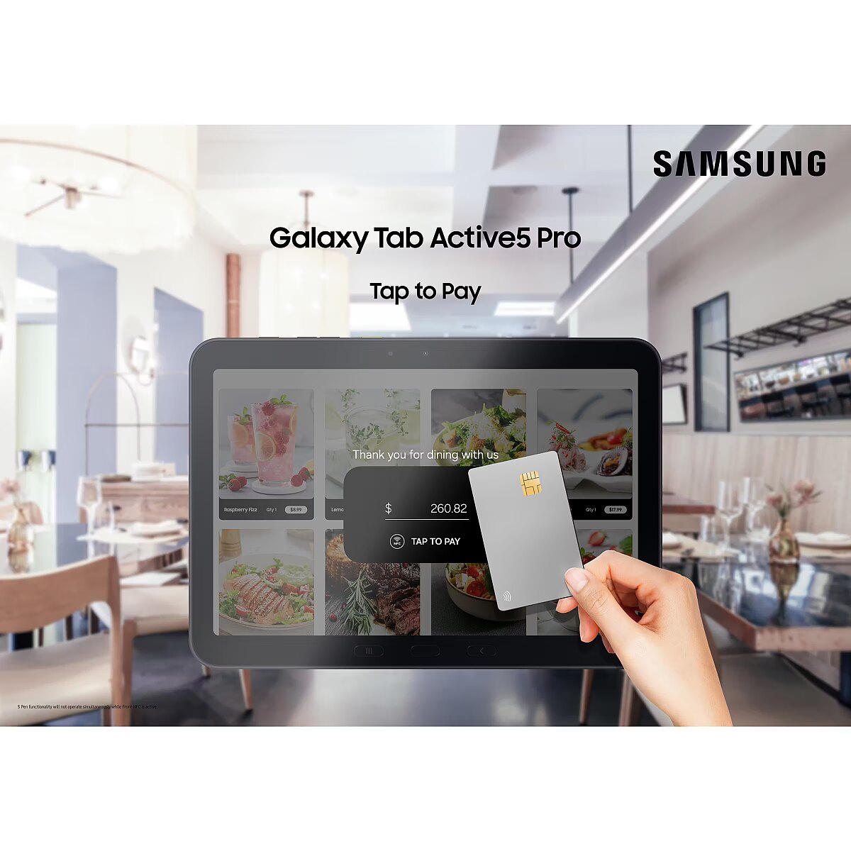 Front Tagging NFC enables simple, tap-based payments right on the front screen of Galaxy Tab Active5 Pro, making transactions easy at kiosks and self-service stations. With Front Tagging NFC functionality, it eliminates the need for extra accessories, helping businesses to operate efficiently. Brilliantly vivid visuals for detailed clarity