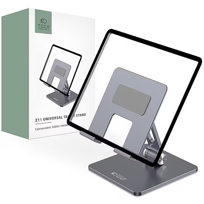 description_en - The high-quality Z11 telescopic holder by Tech-Protect is a great solution for owners of even the largest 13-inch tablets. The accessory allows you to adjust both the angle of inclination and the height according to the individual needs of the user. Made of high-quality aluminum, despite its low weight, it is extremely durable, while the soft, non-slip finish provides maximum protection against scratching and sliding. The weighted, stable base will easily hold the device, and the adjustable structure will optimize the position and ensure high comfort of work. Elegant minimalist design Fully adjustable and foldable Stable aluminum construction Easy to carry Compatible with devices up to 13 inches