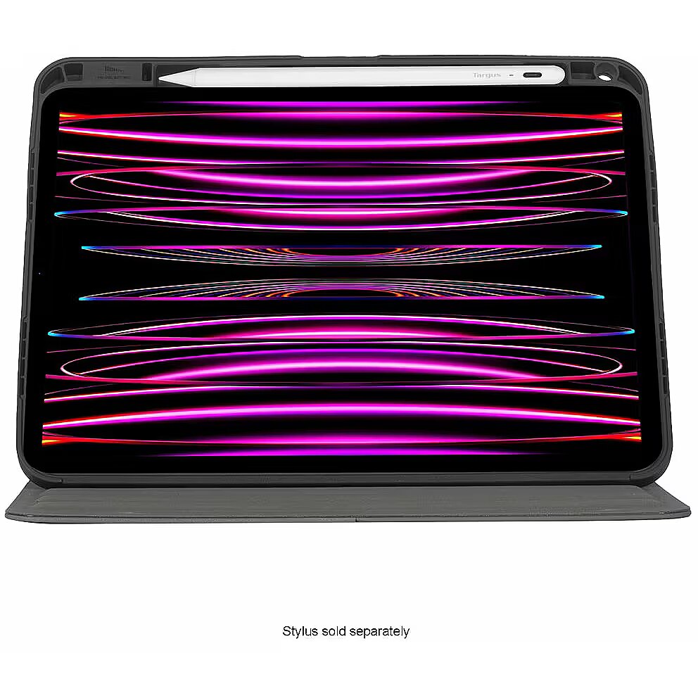 LongDesc - Enjoy 360-degree viewing and military-grade drop protection in a slim, lightweight design with the Click-In™ Rotation Case for iPad Pro® 11-inch (M4).Wrap your iPad Pro® 11-inch (M4) in strong, military grade drop protection. Engineered for durability without adding weight, the Targus® Click-In™ Rotating Case features a custom-molded tray that delivers all-around protection and rotates 360° to switch easily between portrait and landscape viewing.The tray is structurally designed to redirect sound for enhanced audio. Plus, precision cutouts give full access to controls, ports, and cameras. Enjoy added efficiency with an integrated loop for your Apple Pencil® or stylus.The structured cover is engineered to protect, while a non-slip interior makes it easy to adjust your device into infinite viewing angles or a comfortable typing position. Altogether, it’s a superior choice for protecting your tablet.Military Grade ProtectionMinor drops and bumps are no problem for this durable case. In fact, the case passes rigorous MIL-STD 810G testing* to ensure it can protect your iPad Pro® from drops up to 4 feet (or 1.2 meters).Easy Portrait and Landscape ViewingThe patented, 360° rotating tray design makes for a smooth and easy shift from portrait to landscape mode. Plus, you can unfold the cover to serve as a stand, so your video conferences and FaceTime® calls are in the most comfortable viewing position.Full Access, Full FunctionalityA full-coverage tray with reinforced corners allows access to all ports, buttons, and controls. Precision cutouts ensure the camera is accessible for photos or videos without removing your tablet from the case.Swipe or Type with EaseThe textured, non-slip interior lets you position your iPad Pro® in a nearly infinite range of reading or viewing angles for watching videos or interacting with your screen, or flip the cover back for a comfortable typing angle.
