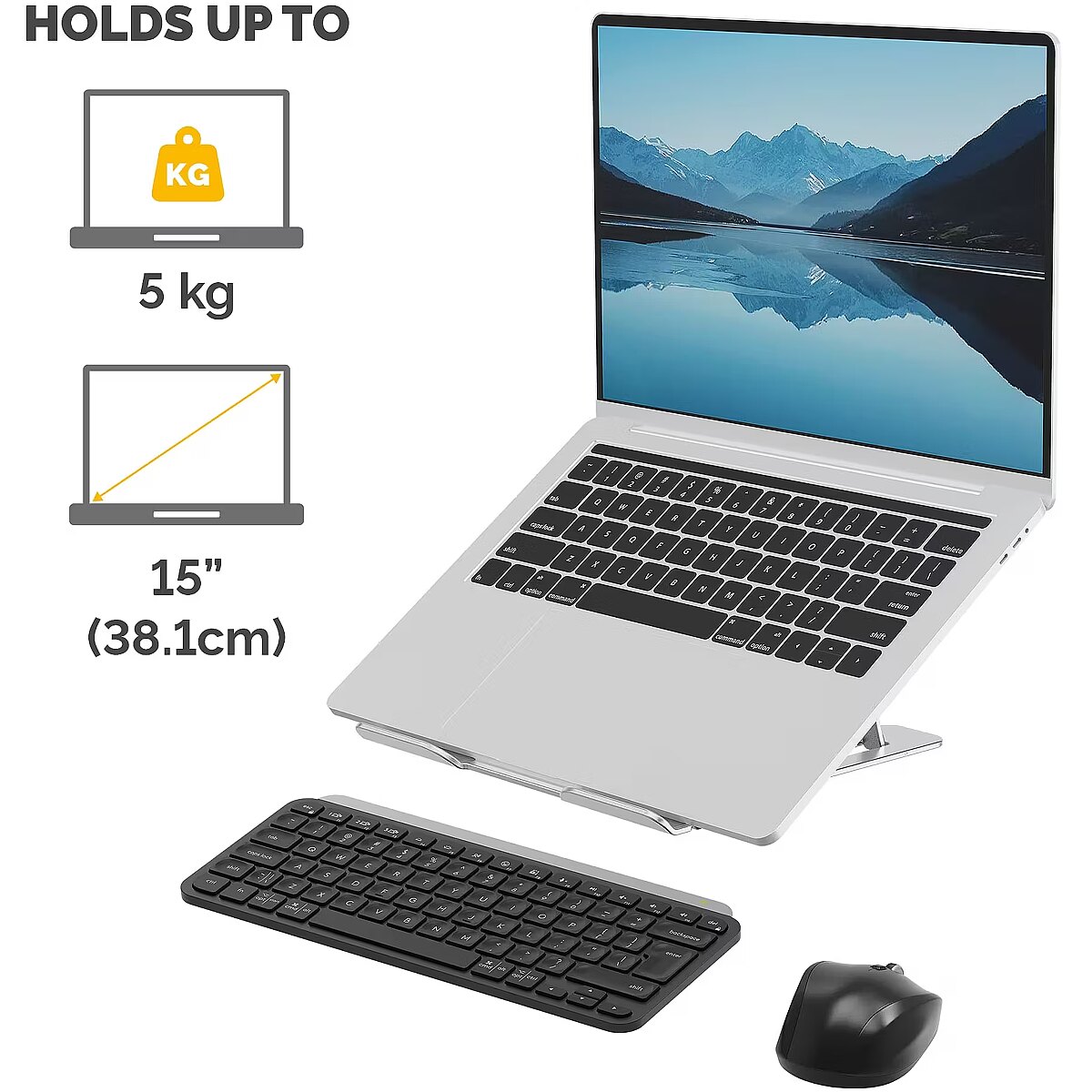 ProductName - Fellowes Laptop Riser Alumia Portable Laptop Stand Max Size 15 inch Max Weight 5kg Silver
