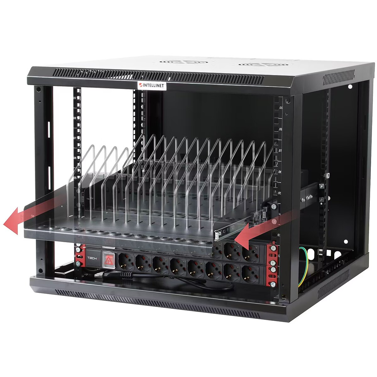 Dane techniczne: Zastosowanie - Wysuwana półka do przechowywania i ładowania 14 urządzeń mobilnych