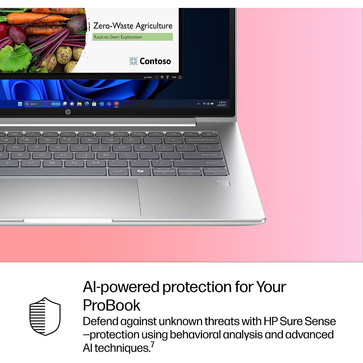 LongDesc - Maximize your potential with a resilient, future-ready laptopThe HP ProBook 4 G1i 14-inch Notebook AI PC provides growing businesses with commercial-grade performance, multi-layered endpoint security[6], and durability in an easily upgradeable design. Powered by the latest Intel processor[2] with 11 TOPS NPU[4] and long battery life, this feature-rich PC is future-ready for long-term productivity and AI exploration.