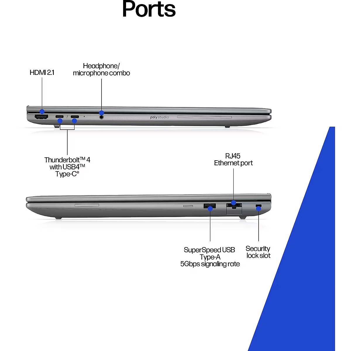 Title - HP ZBook 8 G1i Intel Core Ultra 7 255H Mobile workstation 35.6 cm (14") WUXGA 32 GB DDR5-SDRAM 512 GB SSD NVIDIA RTX 500 Ada Wi-Fi 7 (802.11be) Windows 11 Pro AI Workstation, AI PC Silver