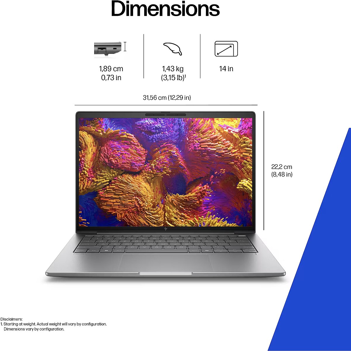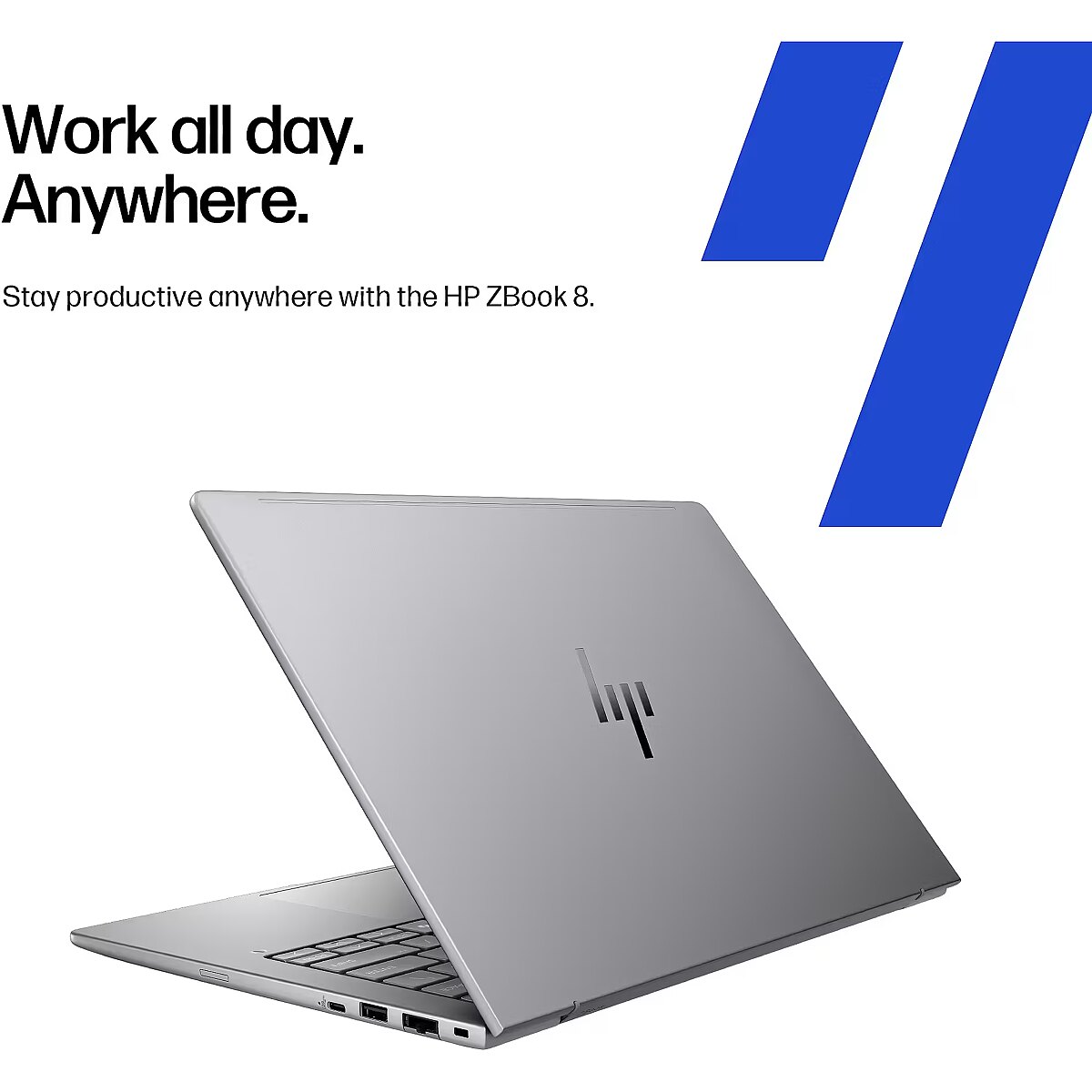 Title - HP ZBook 8 G1ak Copilot+ PC AMD Ryzen AI 7 PRO 350 Mobile workstation 35.6 cm (14") WQXGA 32 GB DDR5-SDRAM 1 TB SSD Wi-Fi 7 (802.11be) Windows 11 Pro AI Workstation, AI PC Silver