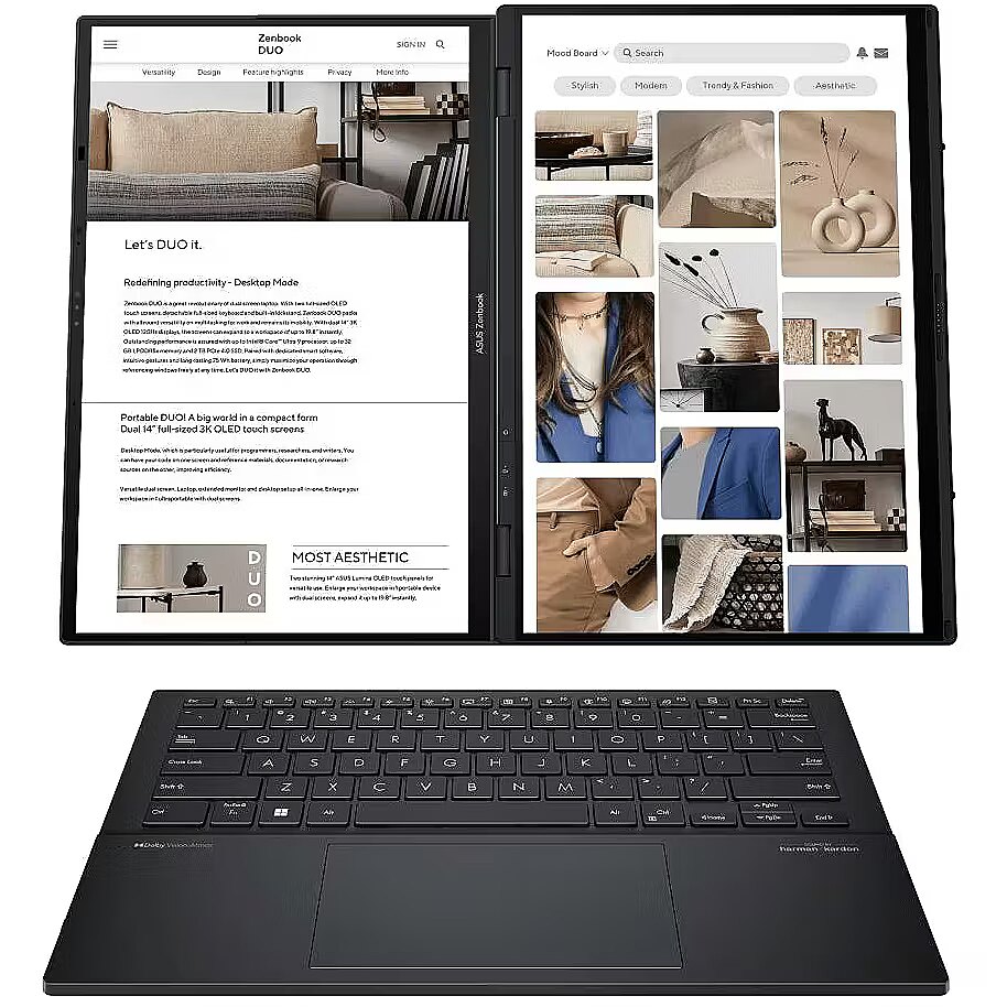 productName - ASUS Zenbook Duo UX8406CA-QL121W Ultra 7 255H 2x14.0" OLED FHD Touch 60Hz 400 nits 32GB LPDDR5X 1TB SSD Glossy Intel Arc Graphics WLAN+BT 1080p camera 75Wh Win11 Inkwell Grey