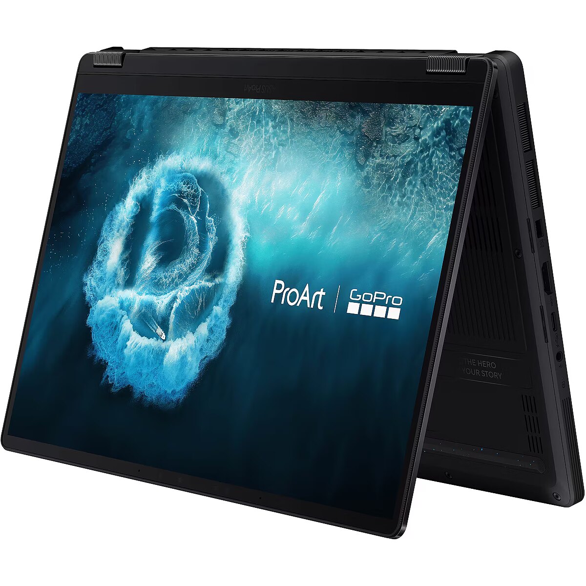 Summary - ASUS ProArt PX13 HN7306EAC-LX041X GoPro Edition Copilot+ PC. Product type: Hybrid (2-in-1), Form factor: Convertible (Folder). Processor family: AMD Ryzen™ AI Max+, Processor model: 395, Processor frequency: 3 GHz. Display diagonal: 33.8 cm (13.3"), HD type: 3K, Display resolution: 2880 x 1800 pixels, Touchscreen. Internal memory: 128 GB, Internal memory type: LPDDR5x-SDRAM. Total storage capacity: 1 TB, Storage media: SSD. Operating system installed: Windows 11 Pro. Product colour: Black