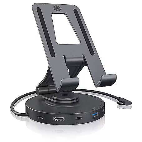 ShortSummaryDescription - ICY BOX Swivel stand for tablet and smartphone with DockingStation, Universal, USB Type-C, Anthracite, Black