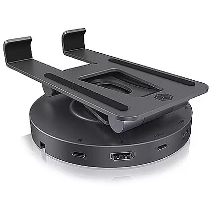 LongSummaryDescription - ICY BOX Swivel stand for tablet and smartphone with DockingStation. Basic device type: Tablet/Smartphone, Brand compatibility: Universal. Docking connector type: USB Type-C. Width: 120 mm, Depth: 120 mm, Height: 185 mm, Weight: 315 g. Product colour: Anthracite, Black