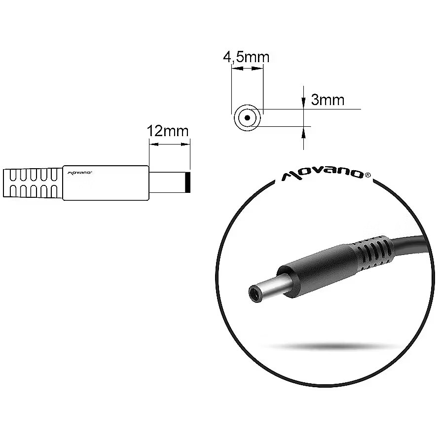 The DC supply parameters (direct current DC) are usually given under the laptop on the sticker after the INPUT sign The voltage V (volts) of the power supply should match the value given on laptop Current (amps) should be equal to or greater than the value on the laptop, this parameter means the maximum current that is allowed load the power supply, the laptop decides about the size of the load W power (watts) is the result of the multiplication of voltage and current The shape and size of the plug should be compared with the picture offered the item and dimensions of the plug given in the description; we can also determined on the basis of the PSU manufacturer's database