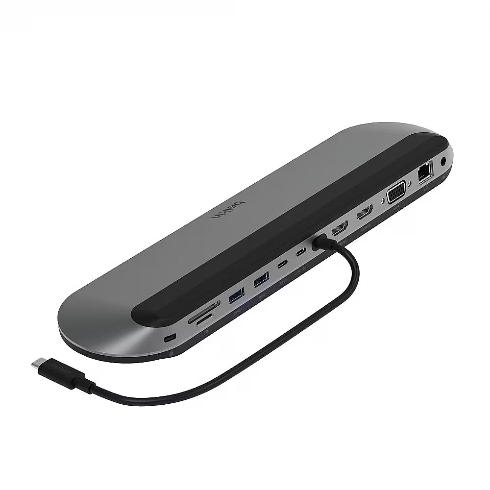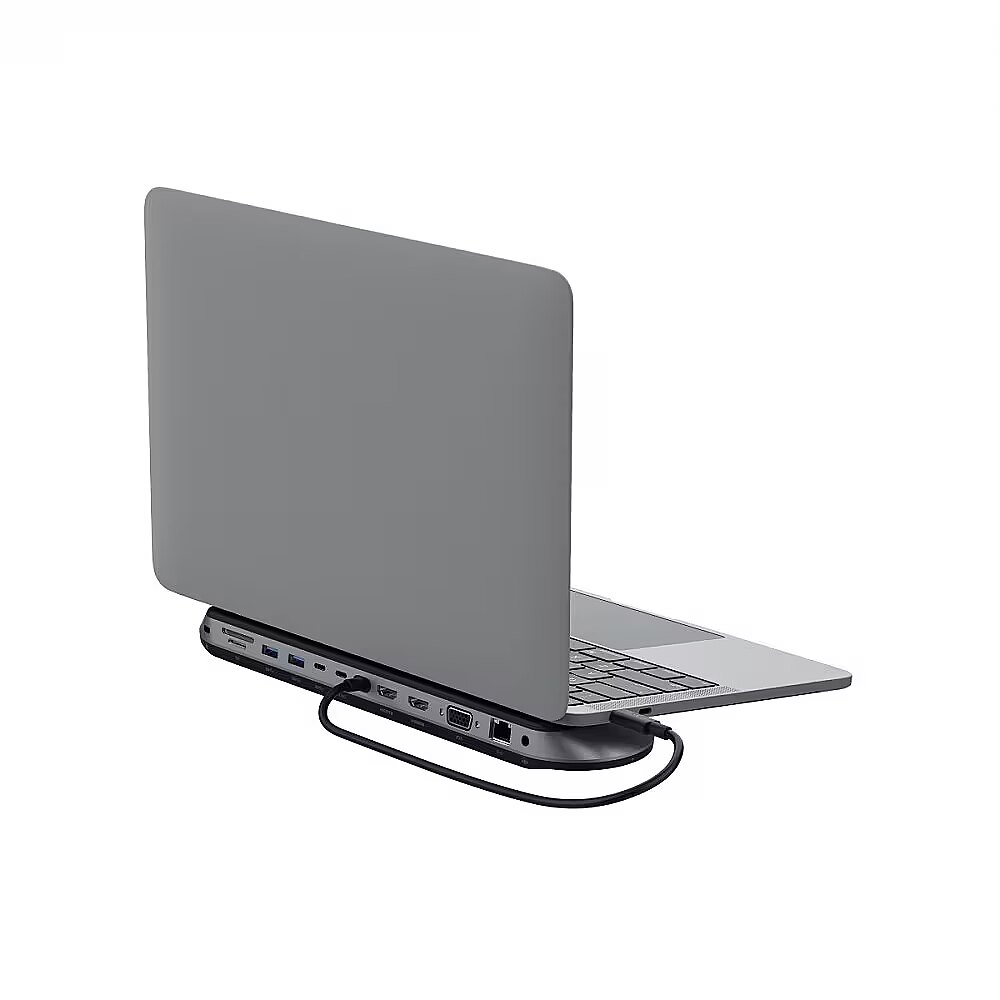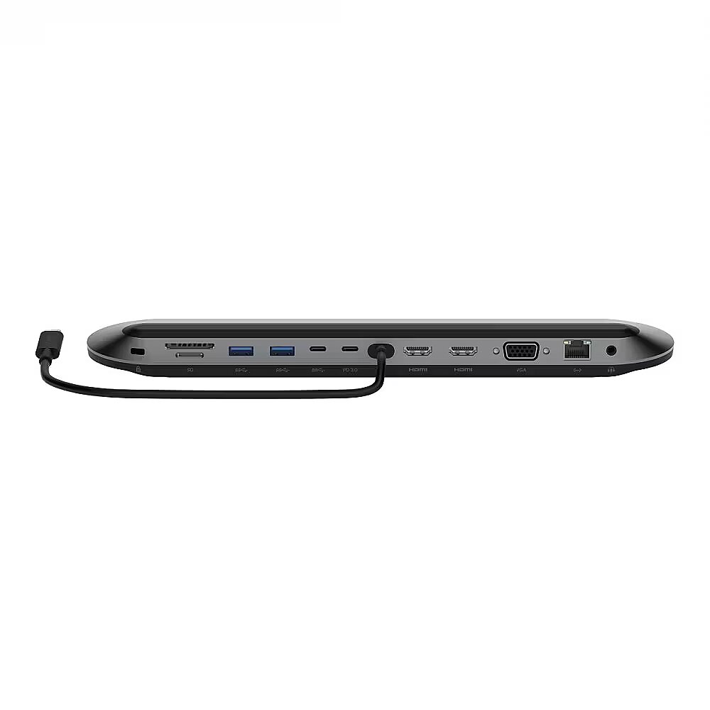 Description - Pro USB-C docking station 11in1 universal Keep your devices powered and connected with a docking station that's ready to use right out of the box, complete with Silicon Motion technology for more power and productivity. Built with functionality in mind, the docking station provides stable connectivity, power and productivity no matter where you place it on your desk. Get 11 additional ports, a PD charging option of up to 100W, the ability to support up to three monitors and a docking station that can be used as a laptop stand. All this is combined with the latest Silicon Motion technology, providing access to more screens without the need for a controller. Product benefits: The latest Silicon Motion technology increases the power and productivity of the user's setup Workstation control with additional ports that newer laptops no longer support Connect up to 3 monitors with up to 4K resolution at 60Hz for a single monitor No driver installation necessary due to Silicon Motion technology (driver available for download) The station can be used as a laptop stand and comes with a 35 cm long centred connection cable for easy connection of a laptop in any space Pass-through power for your devices up to 100 watts Enjoy data transfer speeds of up to 10 Gbps to spend less time transferring data and more time working Benefit from a 2.5Gbps Ethernet connection for a secure connection Built-in Kensington lock for added office security Product is made from at least 72% post-consumer recycled materials and has 100% plastic-free packaging