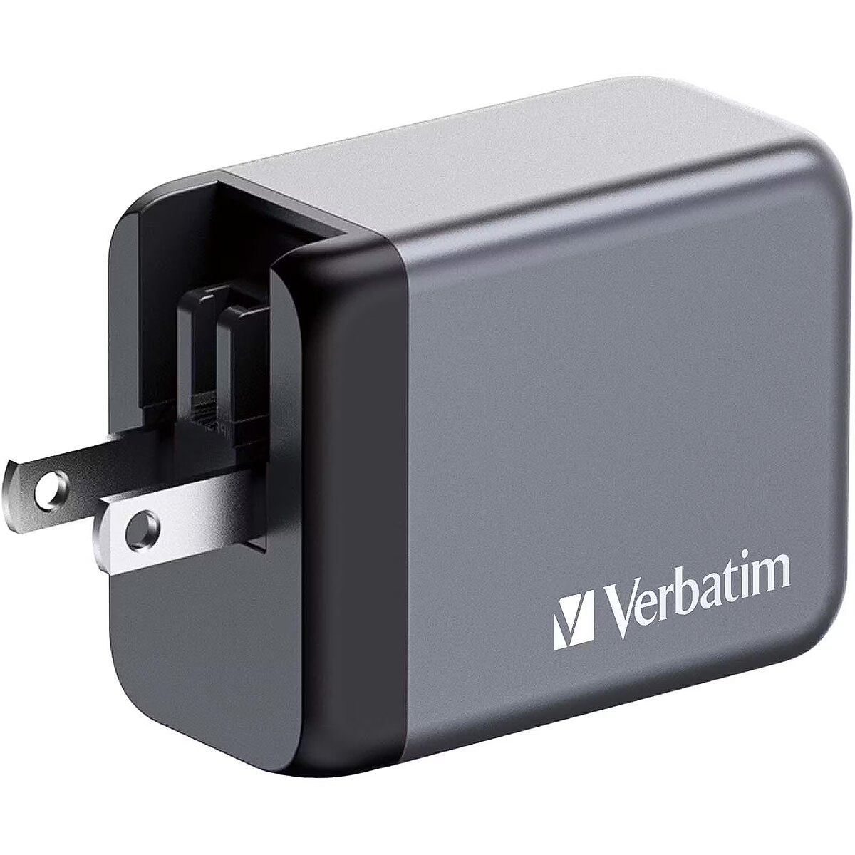 LongDesc - 65w 3-in-1 ChargingVerbatim’s 65W GaN Wall Charger combines two USB-C PD 65W ports and one USB-A QC 3.0 port in a sleek, palm sized design. Ideal for the office, home or travelling to power your laptop, tablet, smartphone, gaming devices, and more. With its foldable US prongs and replaceable EU and UK plugs, it’s the ultimate travel companion.Safe and ReliableThe GaN charger is made with high-quality, flame-resistant materials and features four safety protection systems, including over-current protection, over-voltage protection, short circuit protection, and over-temperature protection to ensure your safety while charging.