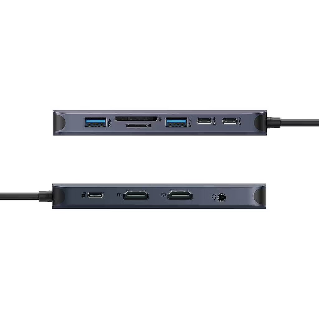 LongDesc - Introducing the HyperDrive® Next 11 Port USB-C Hub - the ultimate connectivity solution for creators, editors, photographers, and more. With dual 4K 60 Hz monitor support for PC and Chromebook™, 11 ultra-fast ports, and lightning-fast data transfers, unleash your creative potential anywhere. Experience 2X faster file transfers using the 10 Gbps USB ports and 3X faster photo and video transfers with microSD and SD 4.0. Benefit from 40% more power with PD 3.1 140 W power pass-through, ensuring efficient charging. Maximise productivity with the HyperDrive® Next 11 Port Dual 4K USB-C Hub.Dual extended 4K 60 Hz monitor support for PC and ChromebookEnhance your productivity and multitasking capabilities by providing a spacious and immersive workspace, allowing users to simultaneously view and work on multiple high-resolution content, such as videos, images, documents, and applications, with smooth and crisp visuals.Transfer data at 2X speeds up to 10 Gbps USB 3.1Enables lightning-fast data transfer, allowing users to move large files, backup data, and sync devices in a fraction of the time compared to traditional USB connections, increasing productivity and efficiency.Transfer photos and video at 3X speeds with 312 MB/s SD and microSD 4.0Provides significant time savings for video editing and photography workflows, as it allows for ultra-fast and efficient transfer of high-resolution images and videos, enabling seamless editing, quicker file backups, and accelerated post-production processes.Fast and reliable Gigabit EthernetProvides high-speed and reliable wired internet connectivity, allowing for faster data transfers, seamless video streaming, and improved online gaming experiences.Wired headphone and microphone supportReliable and high-quality 3.5mm audio jack combo allows users to enjoy immersive sound experiences, communicate clearly in online meetings or gaming sessions, and utilise professional-grade microphones for recording or streaming, providing enhanced audio capabilities and versatility.EcoSmart™ sustainability without compromiseFaster speeds and better for the planet with 100% recycled Aluminium and 85% recycled plastic.