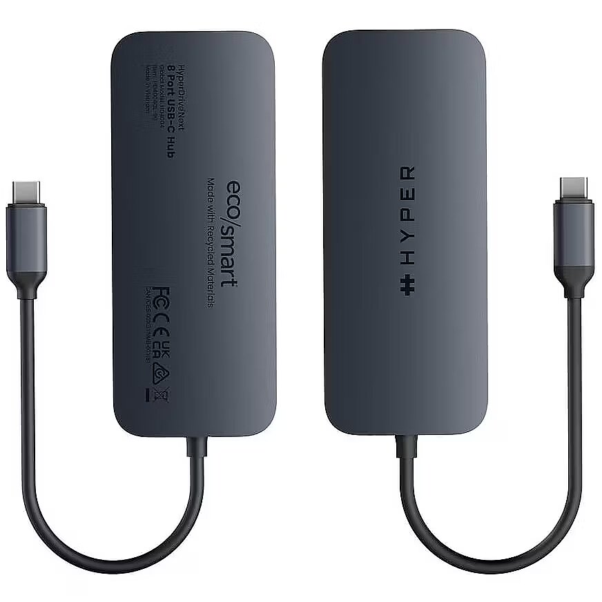 LongDesc - Introducing the HyperDrive® Next 8 USB-C Hub - the ultimate connectivity solution for creators, editors, photographers, and more. With extended 4K 60 Hz monitor support for Mac, PC, and Chromebook, 8 ultra-fast ports, and lightning-fast data transfers, unleash your creative potential anywhere. Experience 2X faster file transfers using the 10 Gbps USB ports and 3X faster photo and video transfers with microSD and SD 4.0. Benefit from 40% more power with PD 3.1 140 W power pass-through, ensuring efficient charging. Make a sustainable choice with EcoSmart™ technology.Extended 4K 60 Hz monitor support for Mac, PC, and ChromebookEnhance your productivity and multitasking capabilities by providing a spacious and immersive workspace, allowing users to simultaneously view and work on multiple high-resolution content, such as videos, images, documents, and applications, with smooth and crisp visuals.Transfer data at 2X speeds with 10 Gbps USB 3.1Enables lightning-fast data transfer, allowing users to move large files, backup data, and sync devices in a fraction of the time compared to traditional USB connections, increasing productivity and efficiency.Transfer photos and video at 3X speeds with 312 MB/s SD and microSD 4.0Provides significant time savings for video editing and photography workflows, as it allows for ultra-fast and efficient transfer of high-resolution images and videos, enabling seamless editing, quicker file backups, and accelerated post-production processes.40% more pass-through charging power with 140 W PD 3.1Power and charge your devices up to 125 W with a 140 W PD 3.1 charger*, ensuring uninterrupted productivity, making it ideal for power-hungry devices and busy professionals on the go.EcoSmart™sustainability without compromiseFaster speeds and better for the planet with 100% recycled aluminiumand 85% recycled plastic.