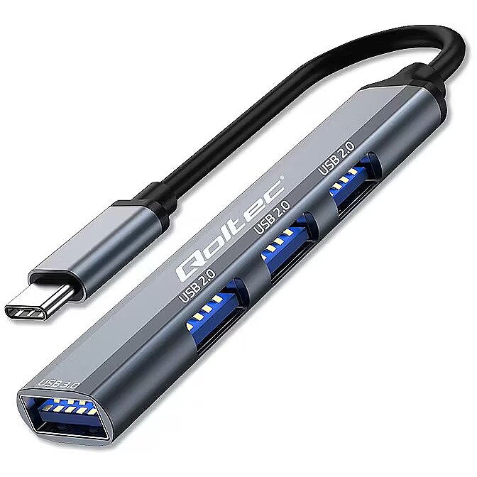Qoltec HUB adapter USB c 3.1 4in1, USB 3.0, 3x USB 2