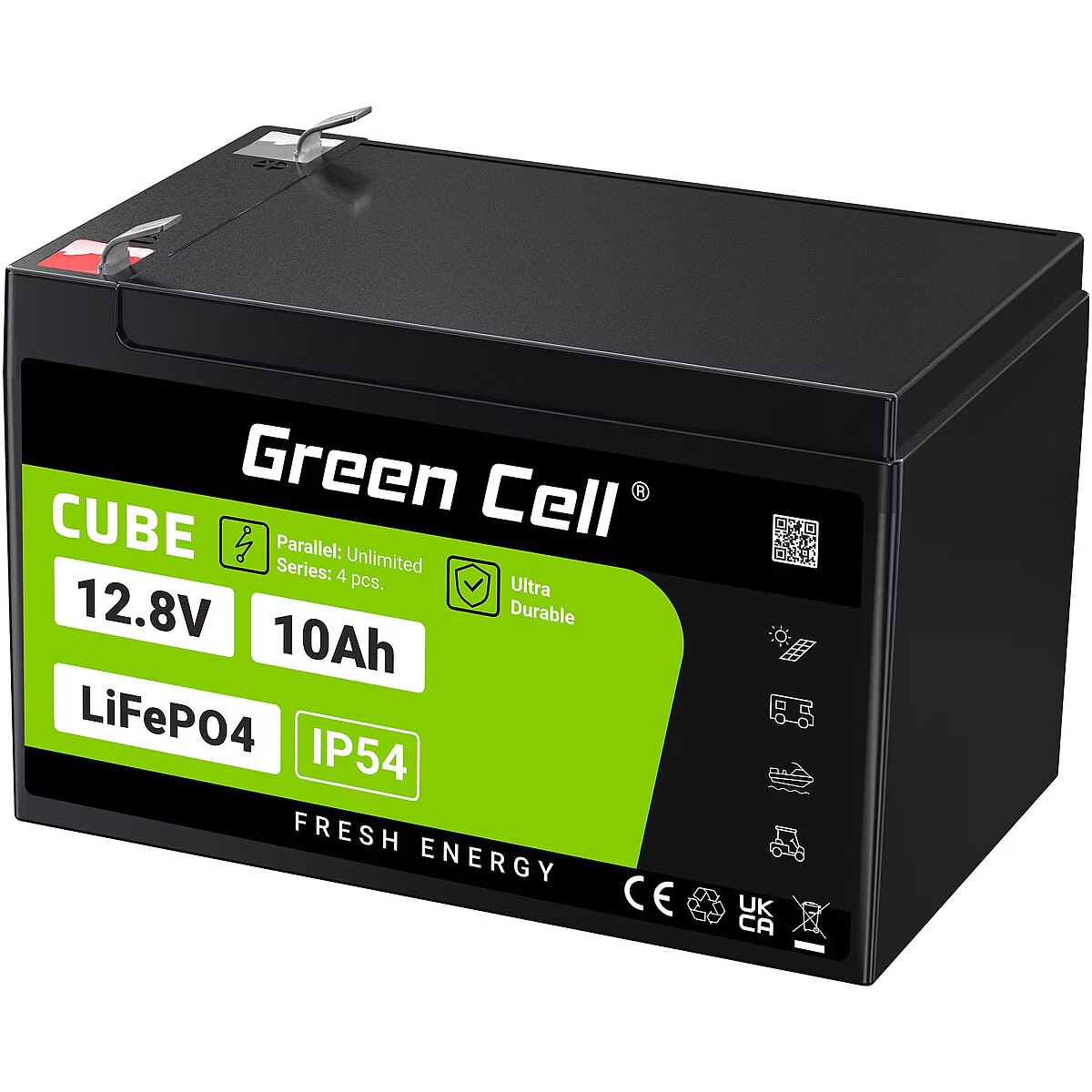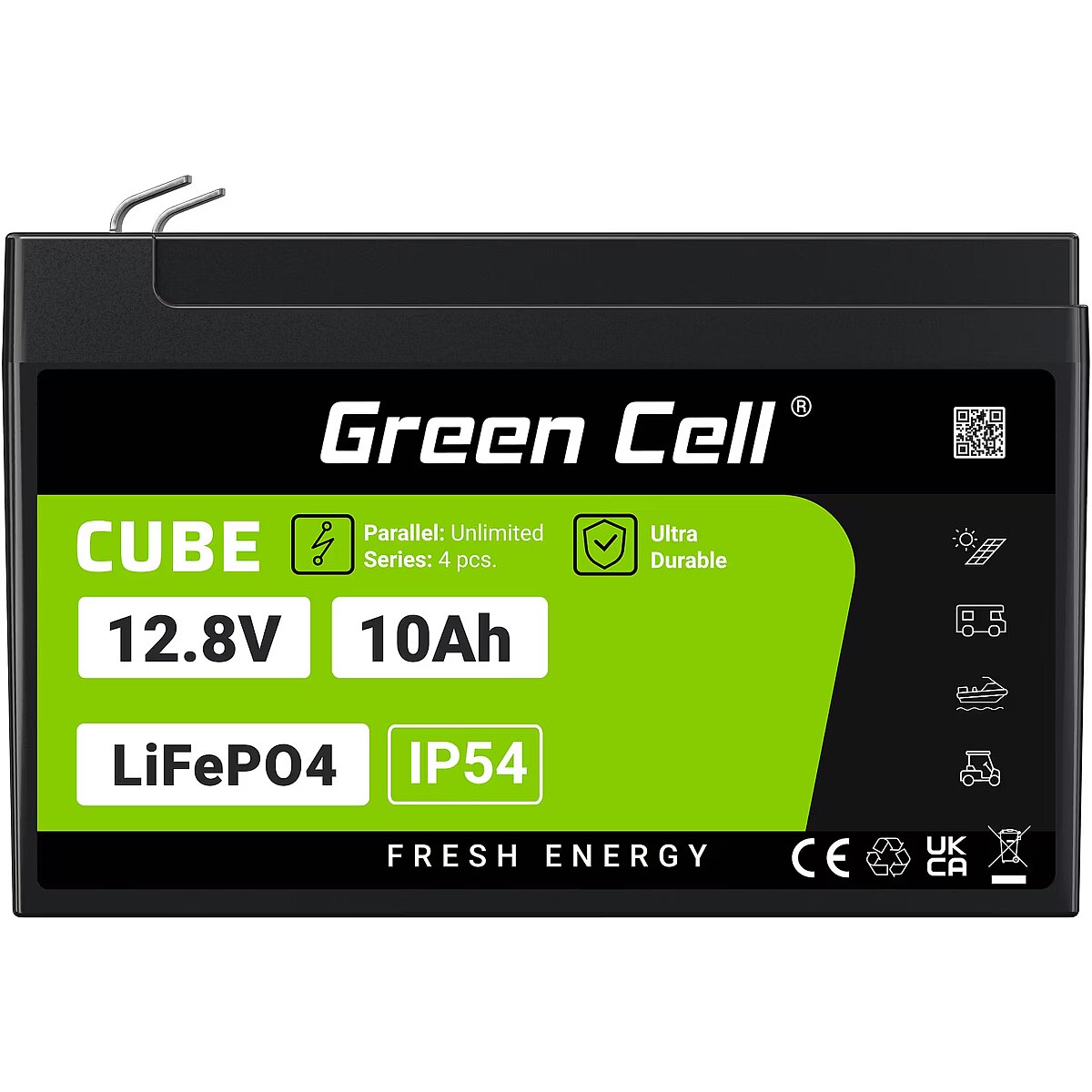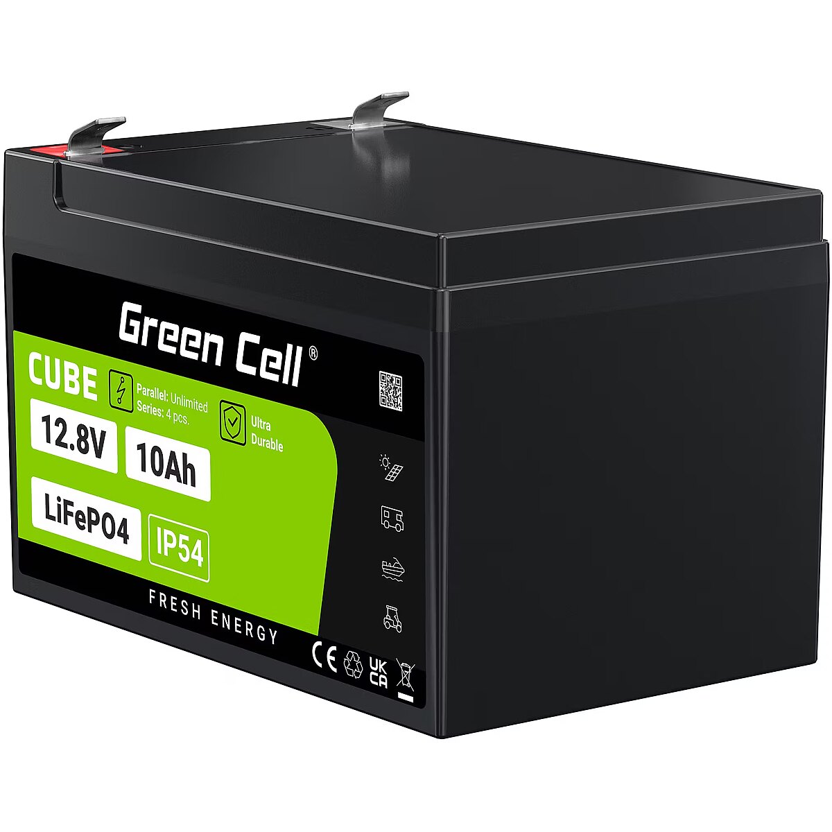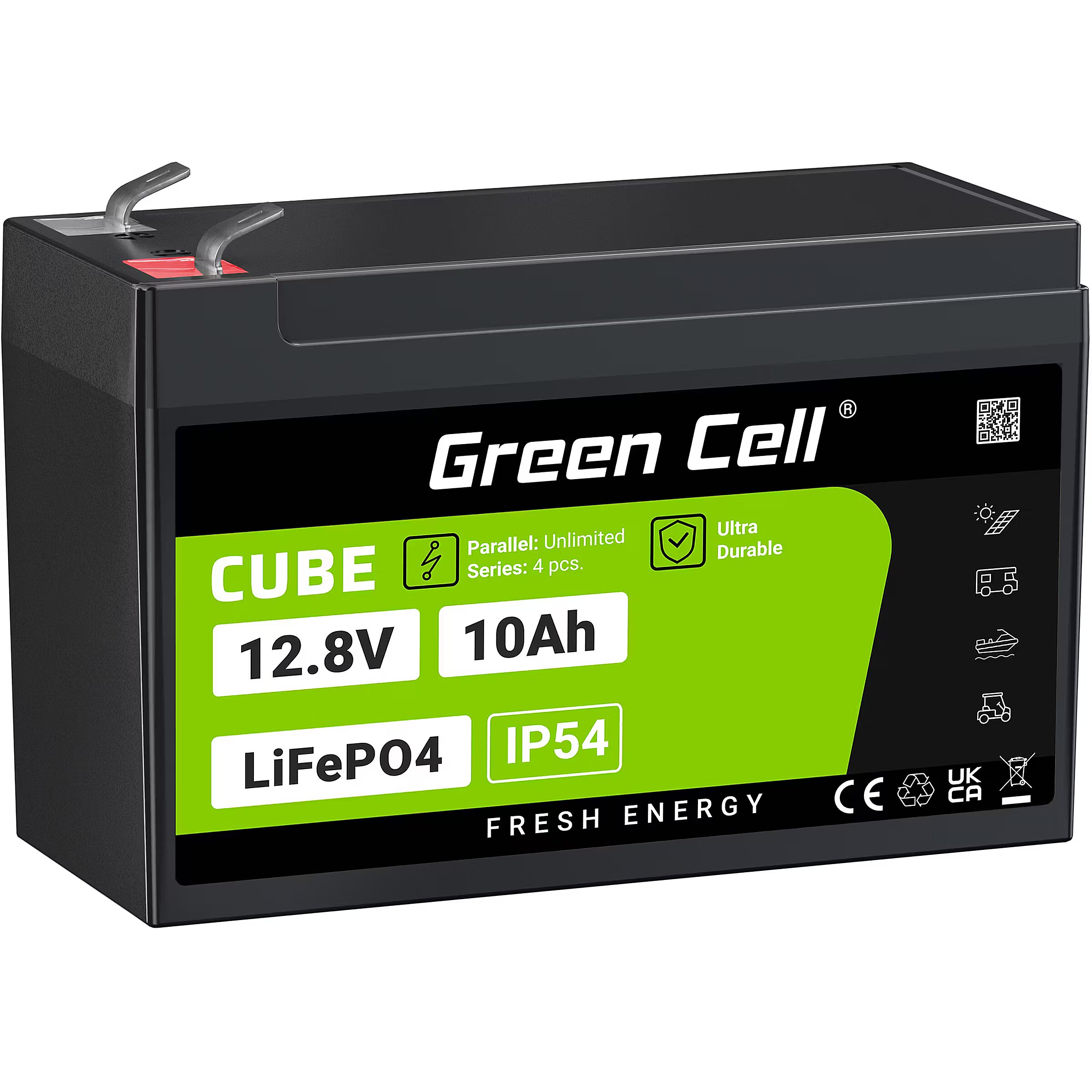 Green Cell CUBE LiFePO4 10Ah 12.8V 128Wh Lithium-iron-phosphate battery for power and emergency lighting, control panels