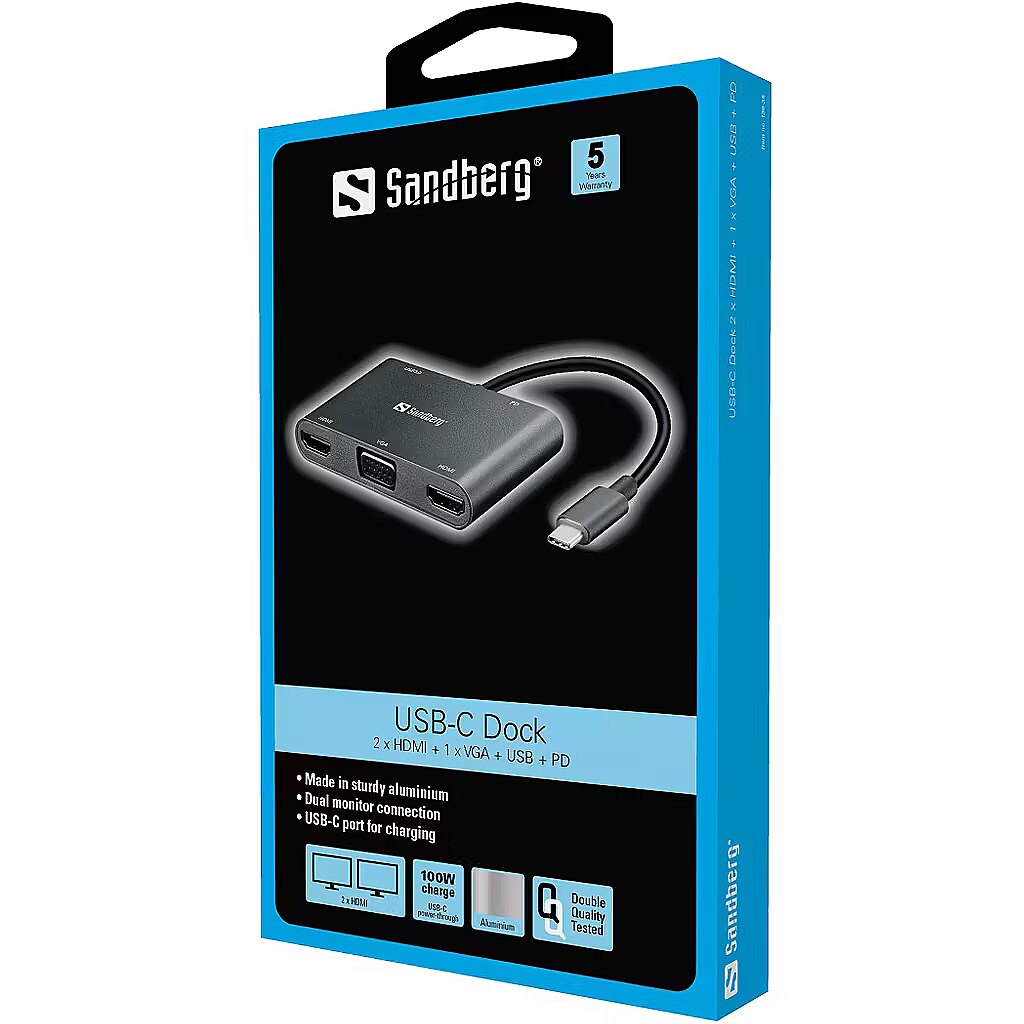 Title - Sandberg USB-C Dock 2xHDMI+1xVGA+USB+PD