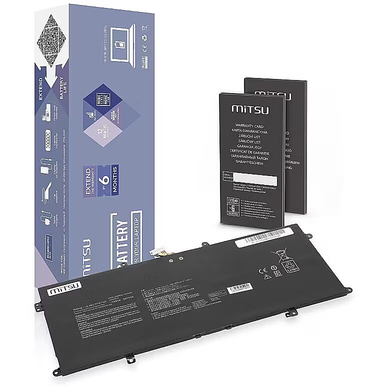 Description - Wysoka jakość w rozsądnej cenie, bezpieczeństwo i ekologia to cechy baterii MITSU, które doceniły już tysiące Europejczyków, głównie w Polsce, Czechach i na Słowacji. Jest ona efektem połączenia najlepszych komponentów z dbałością o każdy etap procesu produkcji, wspartą nieustanną kontrolą jakości, a także naciskiem na bezpieczeństwo urządzenia. MITSU to: Wysokiej klasy, sprawdzone, ekologiczne ogniwa litowo-jonowe klasy A, Rzeczywista deklarowana pojemność, Znacznie wolniejszy spadek nominalnej pojemności w porównaniu do innych tańszych zamienników, Niska podatność na samoistne rozładowania, Brak efektu pamięci, Fabryczne zabezpieczenia przed przeładowaniem i głębokim rozładowaniem, a także przed przepięciem OVP, przegrzaniem OTP, zwarciem SCP i przeciążeniem prądowym OCP, Niezawodny i długotrwały czas między kolejnymi cyklami ładowania, 6-stopniowa kontrola jakości. Kupując ten akumulator do laptopa masz także pewność, że jednocześnie dbasz o środowisko naturalne. Producent ściśle współpracuje z organizacjami zajmującymi się szeroko pojętą edukacją ekologiczną, wspierającymi selektywną zbiórkę oraz maksymalny odzysk odpadów. Baterie MITSU to produkty opatrzone certyfikatami CE, ROHS oraz ISO9001 Zamienne z modelami 02B200-03660500 0B200-03660000 0B200-03660200 0B200-03660300 0B200-03660400 0B200-03660600 C41N1904 C41N1904-1 Kompatybilne z Asus seria VivoBook S14 S435E S435EA S435EA-HM003T S435EA-HM004T seria ZenBook 15 OLED UM3504DA OLED UM3504DA-MA173W OLED UM3504DA-MA204W OLED UM3504DA-MA309W seria ZenBook 14 BX425E BX425EA BX425EA-BM063R BX425EA-BM102R BX425EA-BM144R BX425EA-BM200R BX425EA-BM232R BX425EA-KC546R BX425EA-KI391R BX425EA-KI521R BX425EA-KI522R BX425EA-KI542R BX425EA-KI546R BX425EA-KI618X BX425EA-KI621R UM425I UM425IA UM425IA-AM005T UM425IA-AM020T UM425IA-AM049TS UM425IA-AM079T UM425IA-HM032R UM425IA-HM036R UM425IA-HM037R UM425IA-HM067R UM425U UM425UA UM425UA-AM000TS UM425UA-AM227T UM425UA-AM502TS UM425UA-AM702TS UM425UA-ES51 UM425UA-KI059T UM425UA-KI089T UM425UA-KI095T UM425UA-KI134T UM425UA-KI137T UM425UA-KI156R UM425UA-KI170T UM425UA-KI203T UM425UA-KI222T UX425E UX425EA UX425EA-BM004T UX425EA-BM010T UX425EA-HA663WS UX425EA-HM046T UX425EA-KI355T UX425EA-KI359T UX425EA-KI393T UX425EA-KI440T UX425EA-KI459T UX425EA-KI501TS UX425EA-KI599W UX425EA-KI606T UX425EA-KI701TS UX425J UX425JA UX425JA-BM039T UX425JA-BM335T UX425JA-BM338T UX425JA-HM020T UX425JA-HM025T UX425JA-HM046T UX425U UX425UA UX425UAZ UX435E UX435EA UX435EA-A5022R UX435EA-A5022T UX435EA-A5024T UX435EA-HM046T UX435EA-K9140T seria ZenBook 13 BX325 BX325E BX325EA BX325J BX325JA OLED UM325U OLED UM325UA OLED UM325UA-DH51 OLED UM325UA-DH71 OLED UM325UA-DS71 OLED UM325UA-KG044T OLED UM325UA-KG084 OLED UM325UA-KG096TS OLED UM325UA-KG124W OLED UM325UA-KG127W OLED UM325UA-KG138WS OLED UM325UA-KG701TS OLED UM325UAZ OLED UM325UAZ-KG001R OLED UM325UAZ-KG002T OLED UM325UAZ-KG008T OLED UM325UAZ-KG011T OLED UM325UAZ-KG015T OLED UM325UAZ-KG024W UM325 UM325S UM325SA UM325U UM325UA UX325 UX325E UX325EA UX325J UX325JA UX425 UX425E UX425EA UX425J UX425JA seria ZenBook Flip 13 OLED BX363E OLED BX363EA OLED UX363EA-AH74T OLED UX363EA-DB51T OLED UX363EA-DH51T OLED UX363EA-DH52T OLED UX363EA-HP126R OLED UX363EA-HP156T OLED UX363EA-HP413T OLED UX363EA-HP501WS OLED UX363EA-HP525T OLED UX363EA-HP701TS OLED UX363EA-HP945W OLED UX363EA-HP946W UX363 UX363E UX363EA UX363J UX363JA UX363JA-DB51T UX363JA-EM007T UX363JA-EM008R UX363JA-EM039T UX363JA-EM045T UX363JA-EM120T UX363JA-HR195R UX363JA-XB71T seria ZenBook S UX393 UX393E UX393EA UX393J UX393JA UX393JA-HK004T UX393JA-XB77T UX393UA S435 S435E S435EA UM325U UM325UA UM325UAZ UM425I UM425IA UM425U UM425UA UM425UAZ UX325E UX325EA UX325J UX325JA UX363E UX363EA UX363J UX363JA UX371E UX371EA UX393E UX393EA UX393J UX393JA UX425E UX425EA UX425I UX425IA UX425J UX425JA X432FL
