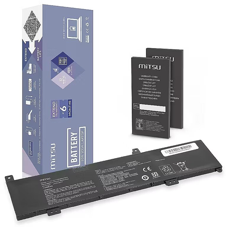 Description - Wysoka jakość w rozsądnej cenie, bezpieczeństwo i ekologia to cechy baterii MITSU, które doceniły już tysiące Europejczyków, głównie w Polsce, Czechach i na Słowacji. Jest ona efektem połączenia najlepszych komponentów z dbałością o każdy etap procesu produkcji, wspartą nieustanną kontrolą jakości, a także naciskiem na bezpieczeństwo urządzenia. MITSU to: Wysokiej klasy, sprawdzone, ekologiczne ogniwa litowo-jonowe klasy A, Rzeczywista deklarowana pojemność, Znacznie wolniejszy spadek nominalnej pojemności w porównaniu do innych tańszych zamienników, Niska podatność na samoistne rozładowania, Brak efektu pamięci, Fabryczne zabezpieczenia przed przeładowaniem i głębokim rozładowaniem, a także przed przepięciem OVP, przegrzaniem OTP, zwarciem SCP i przeciążeniem prądowym OCP, Niezawodny i długotrwały czas między kolejnymi cyklami ładowania, 6-stopniowa kontrola jakości. Kupując ten akumulator do laptopa masz także pewność, że jednocześnie dbasz o środowisko naturalne. Producent ściśle współpracuje z organizacjami zajmującymi się szeroko pojętą edukacją ekologiczną, wspierającymi selektywną zbiórkę oraz maksymalny odzysk odpadów. Baterie MITSU to produkty opatrzone certyfikatami CE, ROHS oraz ISO9001. Zamienne z modelami 0B200-02580000 0B200-02580100 0B200-02580200 0B200-0588020 C31N1636 C31PnCH Kompatybilne z Asus seria VivoBook Pro N580G N580GD N580GD-DB74 N580GD-DM083T N580GD-DM230T N580GD-E4035T N580GD-E4038R N580GD-E4047T N580GD-E4085T N580GD-E4171T N580GD-E4189T N580GD-E4288T N580GD-E4382T N580GD-E4504T N580GD-E4561T N580GD-E4567T N580GD-E4713T N580GD-E4729T N580GD-FI018T N580GD-XB76T N580V N580VD N580VD-DB74T N580VD-DM027T N580VD-DM028T N580VD-DM032T N580VD-DM039T N580VD-DM045T N580VD-DM060T N580VD-DM160T N580VD-DM651T N580VD-E4380R N580VD-E4382R N580VD-E4382T N580VD-E4392T N580VD-E4428T N580VD-FI024T N580VD-FI033T N580VD-FI137T N580VD-FI314T N580VD-FI506T N580VD-FJ285T N580VD-FY162T N580VD-FY189T N580VD-FY246T N580VD-FY304T N580VD-FY367T N580VD-FY561T N580VN X580V X580VD X580VD-007 X580VD-1A X580VD-1B X580VD-9A X580VD-9B X580VN X580VN-1A X580VN-1B M580G M580GD M580V M580VD N580G N580GD N580V N580VD N580VD-DM139T N580VD-DM527T N580VD-DM651T N580VD-E4380R N580VD-FI024T N580VD-FI033T N580VD-FI506T N580VD-FY246T N580VD-FY252T N580VD-FY255T N580VD-FY256T N580VN NX580VD7300 NX580VD7700 UX502V UX502VD X580 X580G X580GD X580GD-1A X580GD-1B X580GD-9A X580V X580VD X580VD-007 X580VD-1A X580VD-1B X580VD-9A X580VD-9B X580VN X580VN-1A X580VN-1B