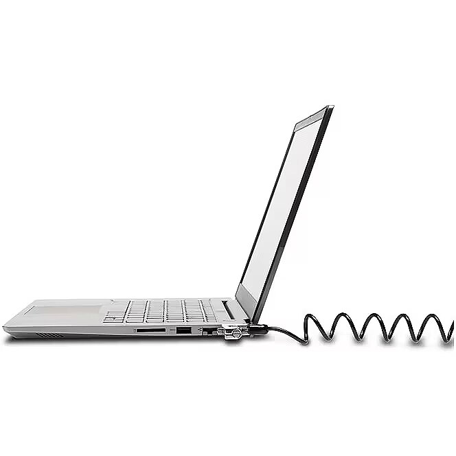 LongDesc - Ideal for thin laptops, the Slim Portable Combination Lock for Standard Slot allows the laptop to lie flat and stable without blocking valuable ports. Self-coiling carbon steel cable sheathed in plastic stretches up to 1.8m and shrinks down to 76mm for easy portability. Features include a resettable four-number combination, one-handed operation and Register & Retrieve™ for quick, secure and easy combination retrieval. Meets or exceeds rigorous strength testing standards. Five-year warranty. From Kensington, inventor of the laptop cable lock and industry leader in physical device security for more than 25 years.Self-coiling carbon steel cable is easily transportable and strong, stretching up to 1.8m and shrinking down to 76mm. Plastic sheathing protects surfaces.Slim lockhead allows the laptop to lie flat and stable.Won’t block valuable ports, allowing for full use of the laptop while attached.Resettable four-wheel number code lets you choose from 10,000 possible combinations.Pivot and rotate cable head featuring one-handed operation allows for easy and flexible connection and movement.Register & Retrieve™, Kensington’s free online code registration program that allows for quick, secure and easy lookup if the combination is ever lost or forgotten.Kensington locks are verified and tested. Each lock is precision engineered to meet or exceed rigorous industry standards for strength, physical endurance and mechanical resilience.A five-year warranty means you can rest assured knowing you’re covered by Kensington, inventor and worldwide leader in laptop security locks.