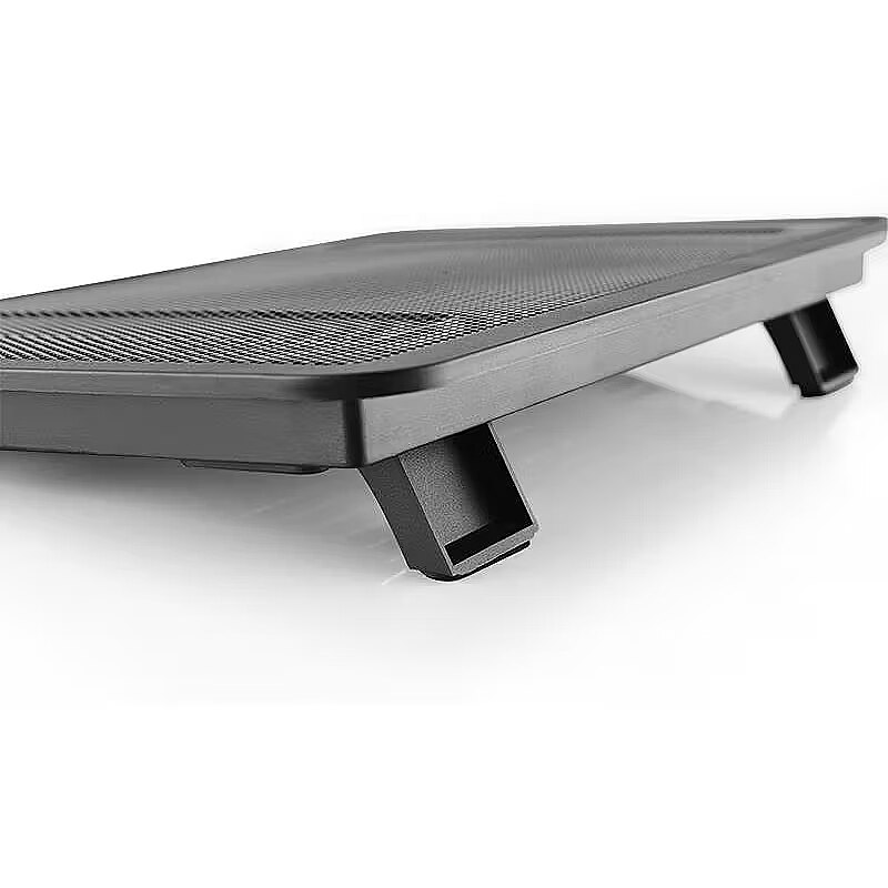 of a high quality plastic material. The upper part of the pad has been covered with a special netlike surface that provides an excellent rejection of the generated heat by the computer, thanks to the many openings in the net. There is a very silent and efficient 14cm cooling fan, backlit with blue LED’s, located directly under the cooling pad.