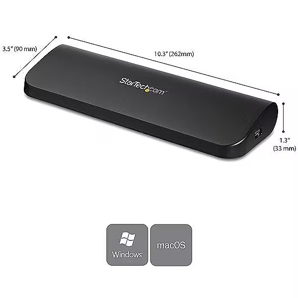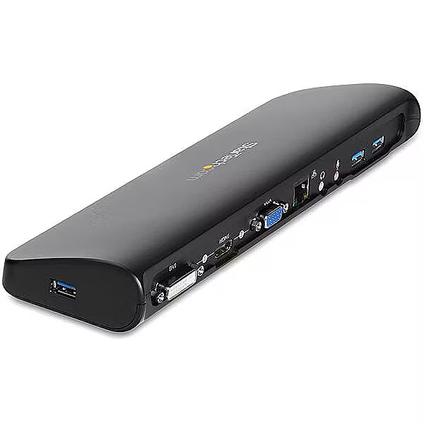 LongSummaryDescription - StarTech.com Dual-Monitor USB 3.0 Docking Station with HDMI & DVI/VGA~Dual Monitor USB 3.0 Laptop Docking Station with HDMI/DVI/VGA, 3x USB-A Hub, GbE, Audio, Universal Type-A Dock for Windows/macOS/ChromeOS - TAA Compliant. Connectivity technology: Wired, Host interface: USB 3.2 Gen 1 (3.1 Gen 1) Type-B. Ethernet LAN data rates: 10,100,1000 Mbit/s, Copper ethernet cabling technology: 1000BASE-T, 100BASE-TX, 10BASE-T, Networking standards: IEEE 802.3, IEEE 802.3ab, IEEE 802.3u. Product colour: Black, Data transfer rate: 5 Gbit/s, Maximum digital resolution: 1920 x 1200 pixels. AC input voltage: 100-240 V, Input current: 0.9 A, Output voltage: 5 V. Windows operating systems supported: Windows 10, Windows 10 Education, Windows 10 Education x64, Windows 10 Enterprise, Windows 10..., Mac operating systems supported: Mac OS X 10.11 El Capitan, Mac OS X 10.12 Sierra, Mac OS X 10.14 Mojave, Mac OS X 11.0 Big Sur,..., Other operating systems supported: ChromeOS