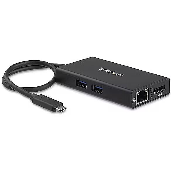 LongSummaryDescription - StarTech.com USB-C Multiport Adapter - USB-C Travel Docking Station with 4K HDMI - 60W Power Delivery Pass-Through, GbE, 2pt USB-A 3.0 Hub - Portable Mini USB Type-C Dock for Laptop. Connectivity technology: Wired, Host interface: USB 3.2 Gen 1 (3.1 Gen 1) Type-C, USB Power Delivery up to: 60 W. Ethernet LAN data rates: 10,100,1000 Mbit/s, Networking standards: IEEE 802.1Q, IEEE 802.3, IEEE 802.3ab, IEEE 802.3u. Product colour: Black, Data transfer rate: 5 Gbit/s, Maximum digital resolution: 4096 x 2160 pixels. Power source type: DC, USB. Windows operating systems supported: Windows 10, Windows 10 Education, Windows 10 Education x64, Windows 10 Enterprise, Windows 10..., Mac operating systems supported: Mac OS X 10.10 Yosemite, Mac OS X 10.11 El Capitan, Mac OS X 10.12 Sierra, Mac OS X 10.13 High..., Other operating systems supported: ChromeOS