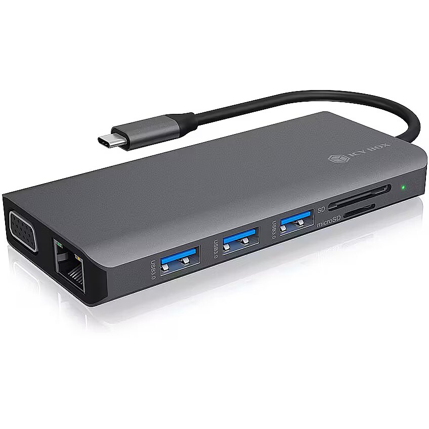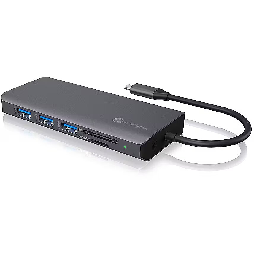 ShortSummaryDescription - ICY BOX IB-DK4070-CPD, Wired, USB 3.2 Gen 1 (3.1 Gen 1) Type-C, 100 W, 1000 Mbit/s, Anthracite, Black, MicroSDXC, SDXC