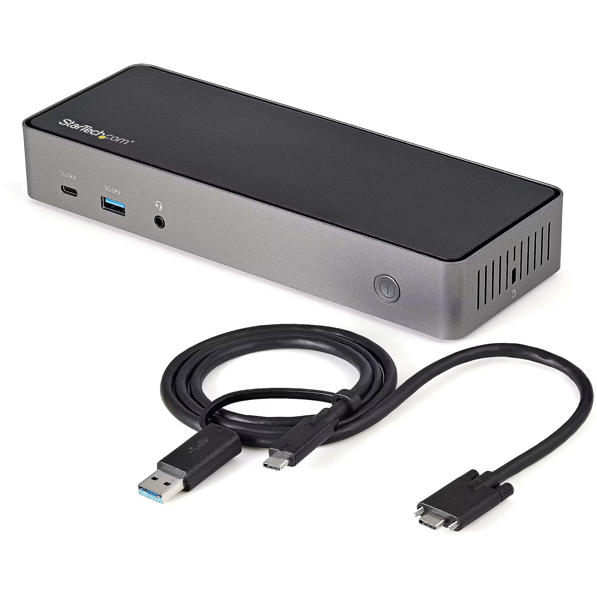 ShortSummaryDescription - StarTech.com USB-C & USB-A Dock - Hybrid Universal Triple Monitor Laptop Docking Station DisplayPort & HDMI 4K 60Hz - 85W Power Delivery, 6x USB Hub, GbE, Audio - USB 3.1 Gen 2 10Gbps - TAA, Wired, USB 3.2 Gen 2 (3.1 Gen 2) Type-C, 85 W, 10,100,1000 Mbit/s, Black, Grey, 10 Gbit/s