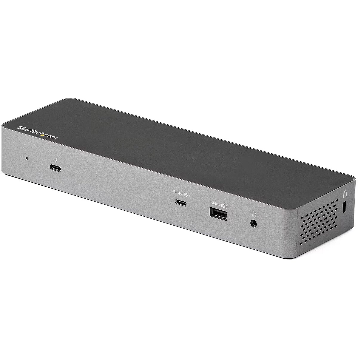 ShortSummaryDescription - StarTech.com USB C Docking Station for Macbook Pro/Air-M1/M2/M3/M4, Thunderbolt Compatible, HDMI/DisplayPort, Dual 4K 60Hz/Single 8K, USB Type-C Laptop Dock, 96W Power Delivery, USB 10Gbps, Wired, Thunderbolt 3, 96 W, 3.5 mm, Black, Grey, 40 Gbit/s